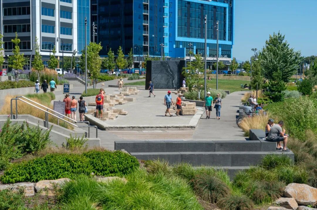 This new mixed-neighbourhood includes residential, retail, commercial, civic, park spaces, and environmental restoration areasit makes space for 6,000 new residents and 5,000 office workers.