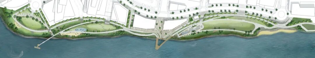 景观设计师与开发商和其项目团队一起构想了公园所在的 12 公顷总体规划,他们能够将前滨的生态恢复与滨海的社会和城市的文化结合起来:从水边发展而来的连续、多样的海滨体验。