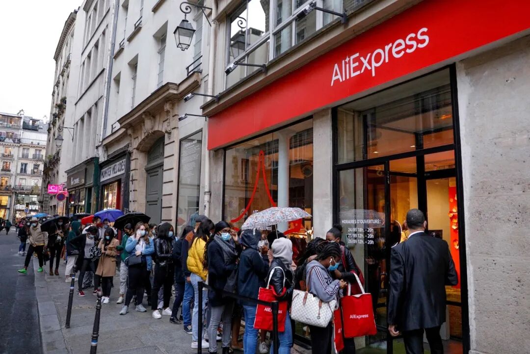 2020年9月,法国巴黎,人们在全球速卖通快闪店外排队等候。