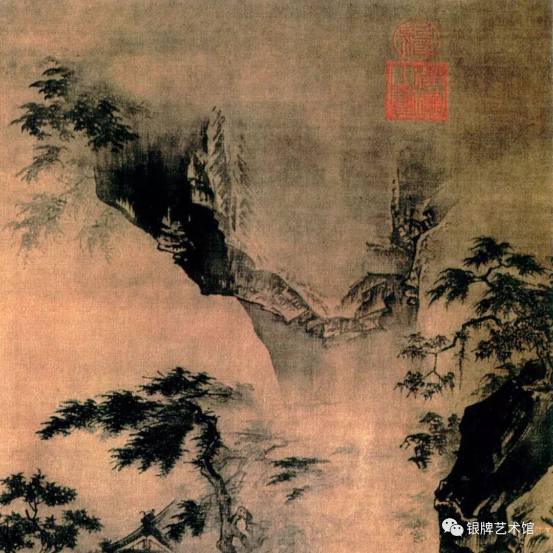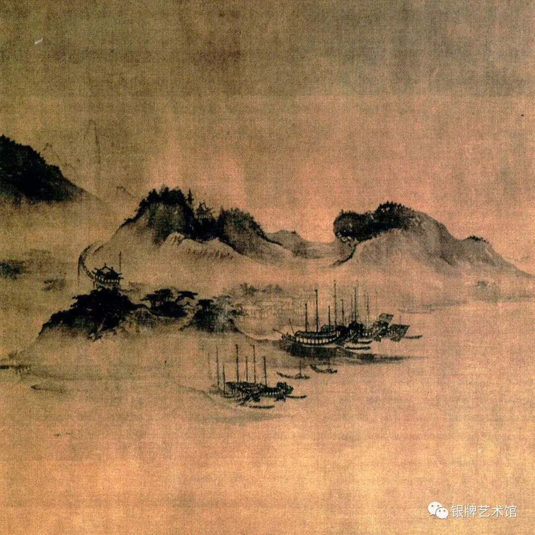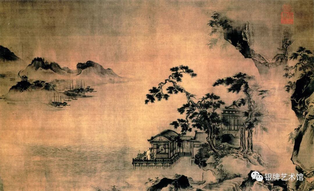 对岸远山,晕染清淡,和近景中的浓墨重染形成对比,整幅作品用笔细劲,是学宋朝马远一派。