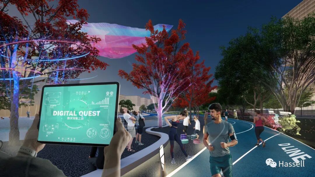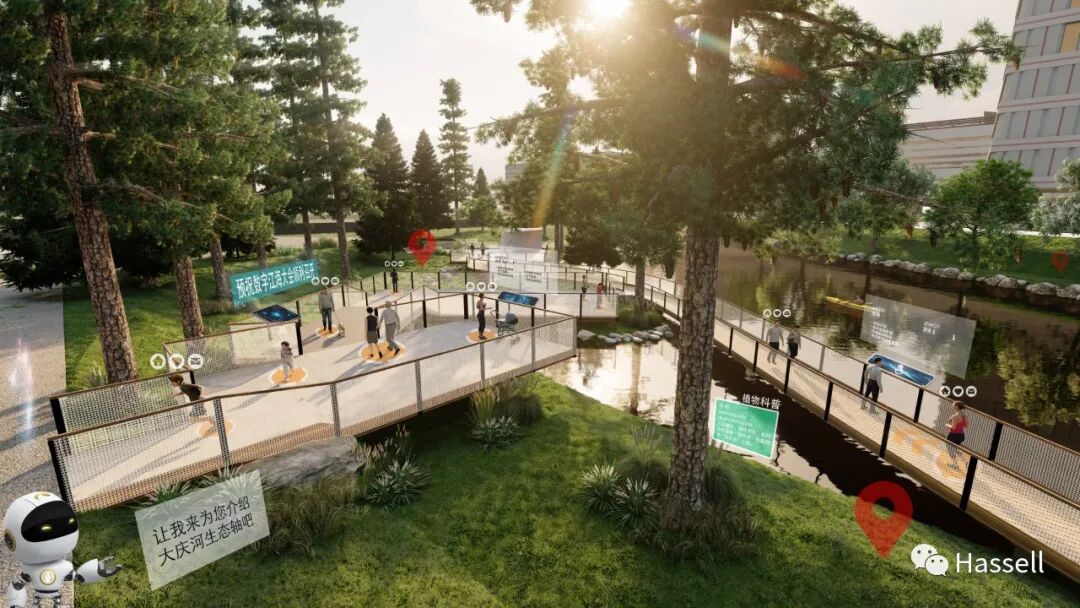 交互开放的多维网络串联开放空间,构建多层级的漫步和骑行系统,水道的互联也大大丰富了场地的活动内容,游船、皮划艇等活动让人们在自然之中拥有趣味水上体验。景观与数字化的结合,形成触媒,激活场所引力,吸引人群聚集。