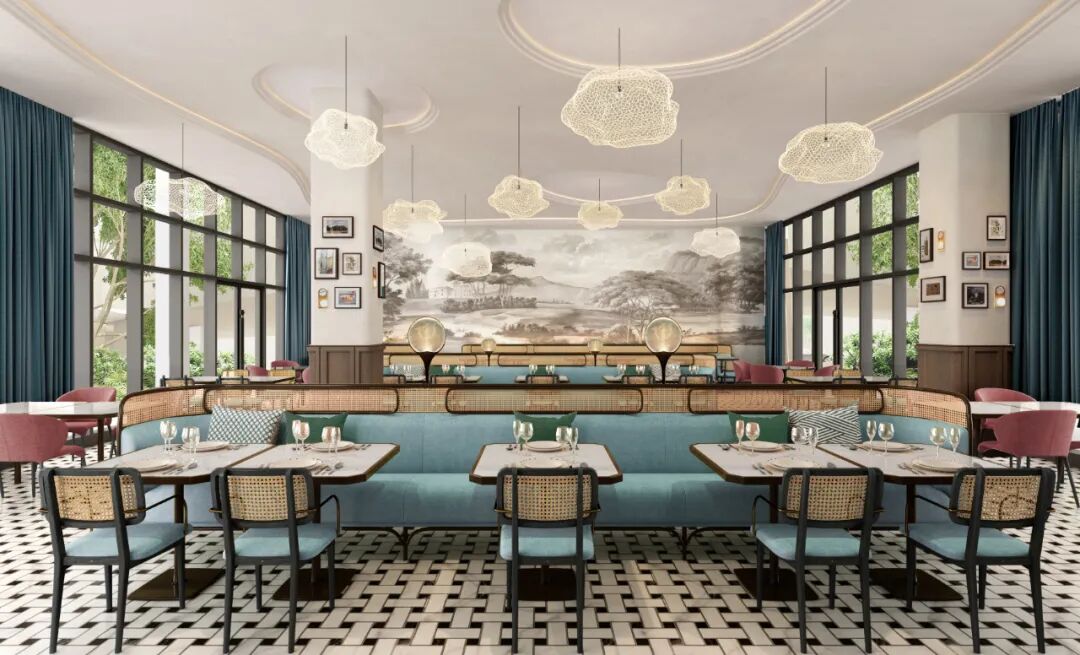 进入艺术大堂,优雅的选择楼梯,精致的西式线条搭配棋盘式的石材铺贴,优美的穹顶下,复古而不失时尚的艺术吊灯,周围环绕着是极具序列感的拱窗,每一个元素的运用都透露着深深的时代的烙印。