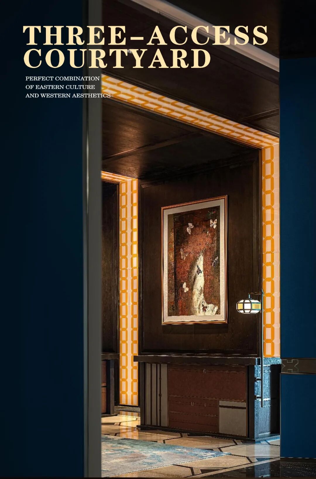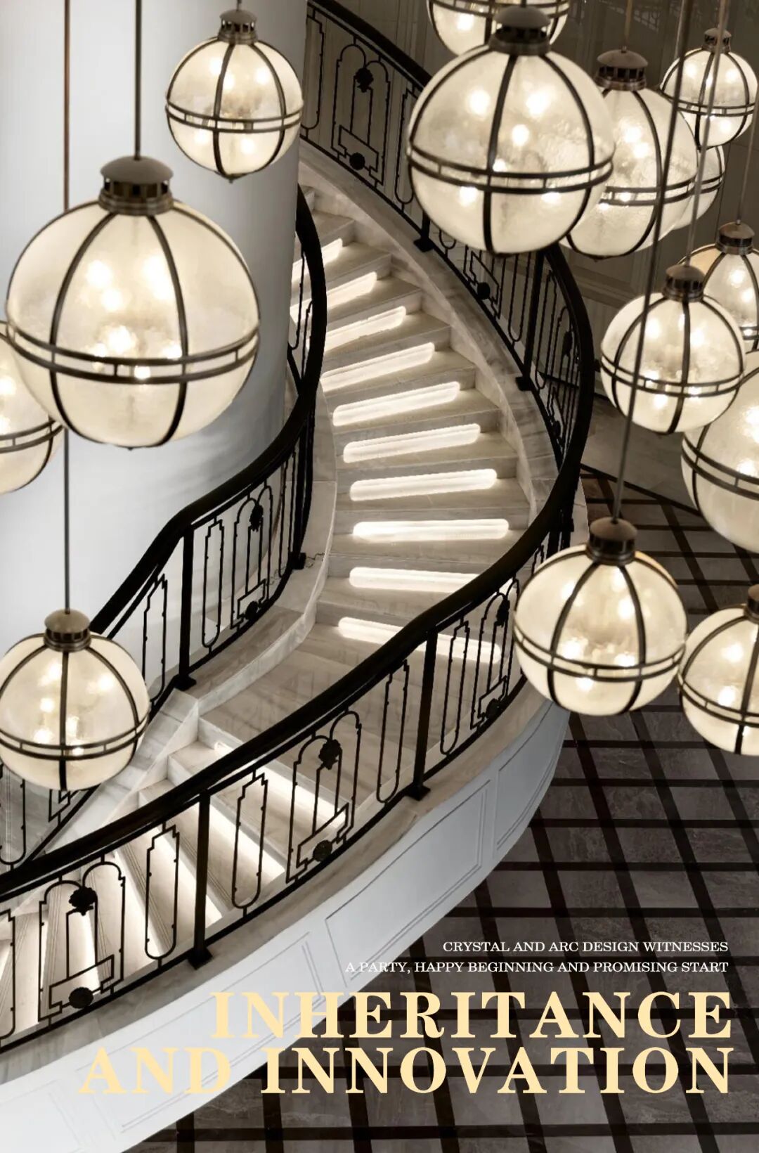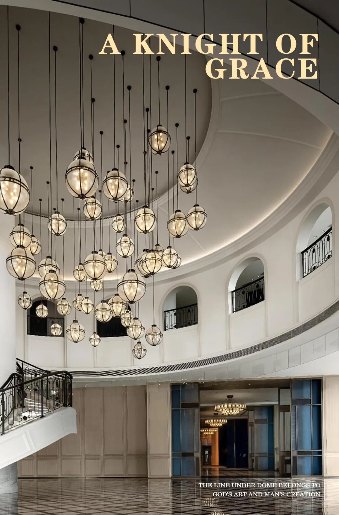进入艺术大堂,优雅的选择楼梯,精致的西式线条搭配棋盘式的石材铺贴,优美的穹顶下,复古而不失时尚的艺术吊灯,周围环绕着是极具序列感的拱窗,每一个元素的运用都透露着深深的时代的烙印。