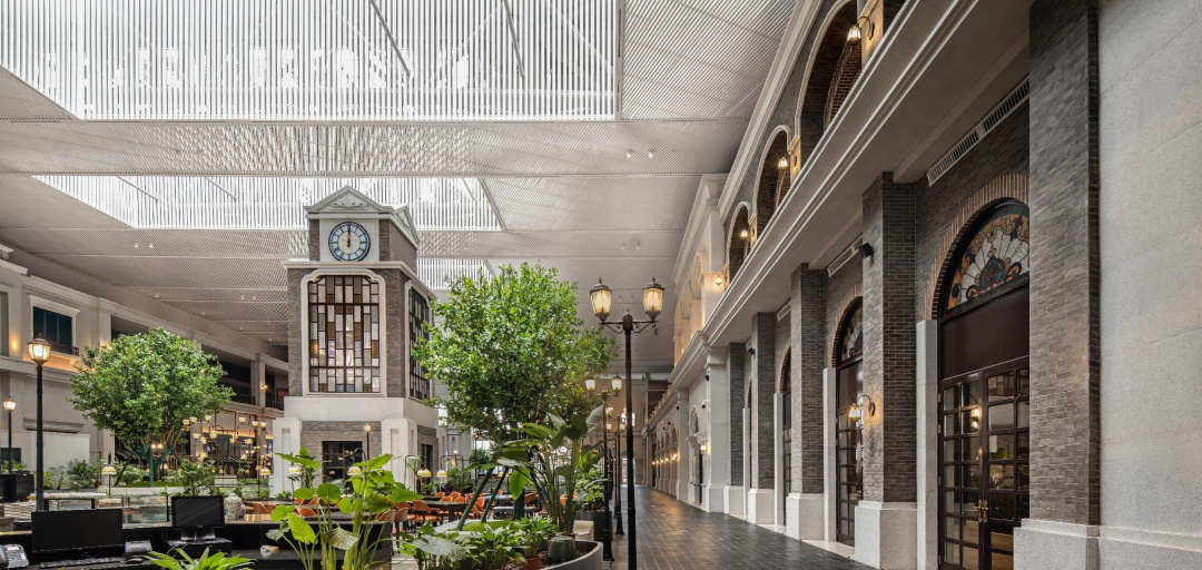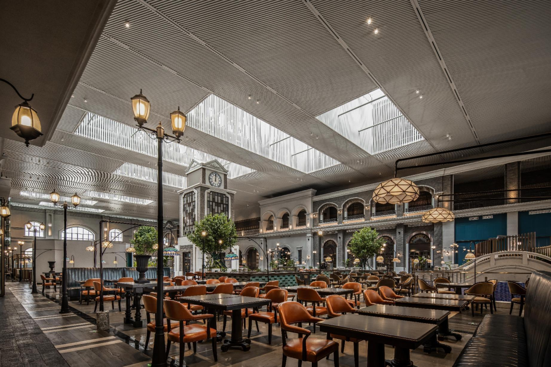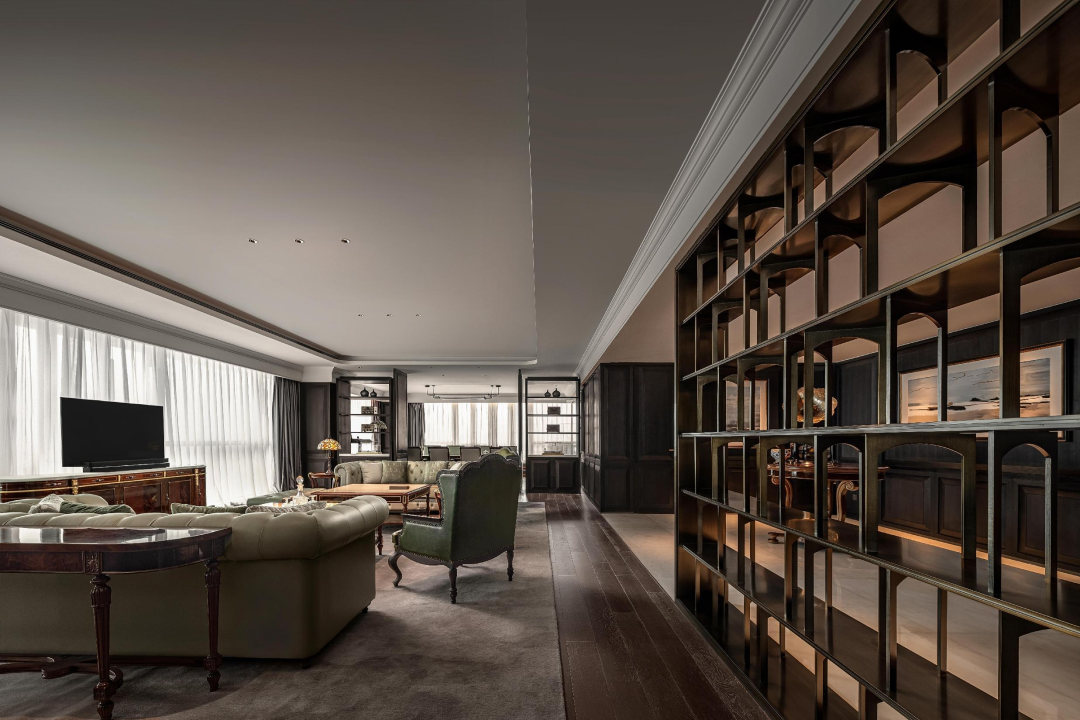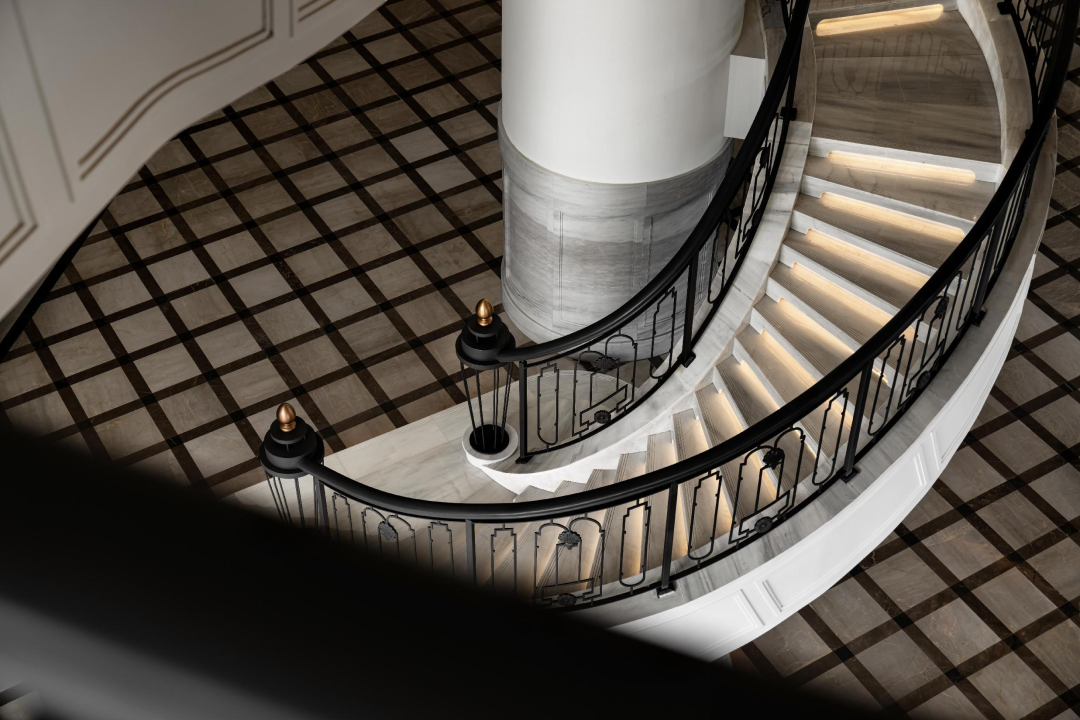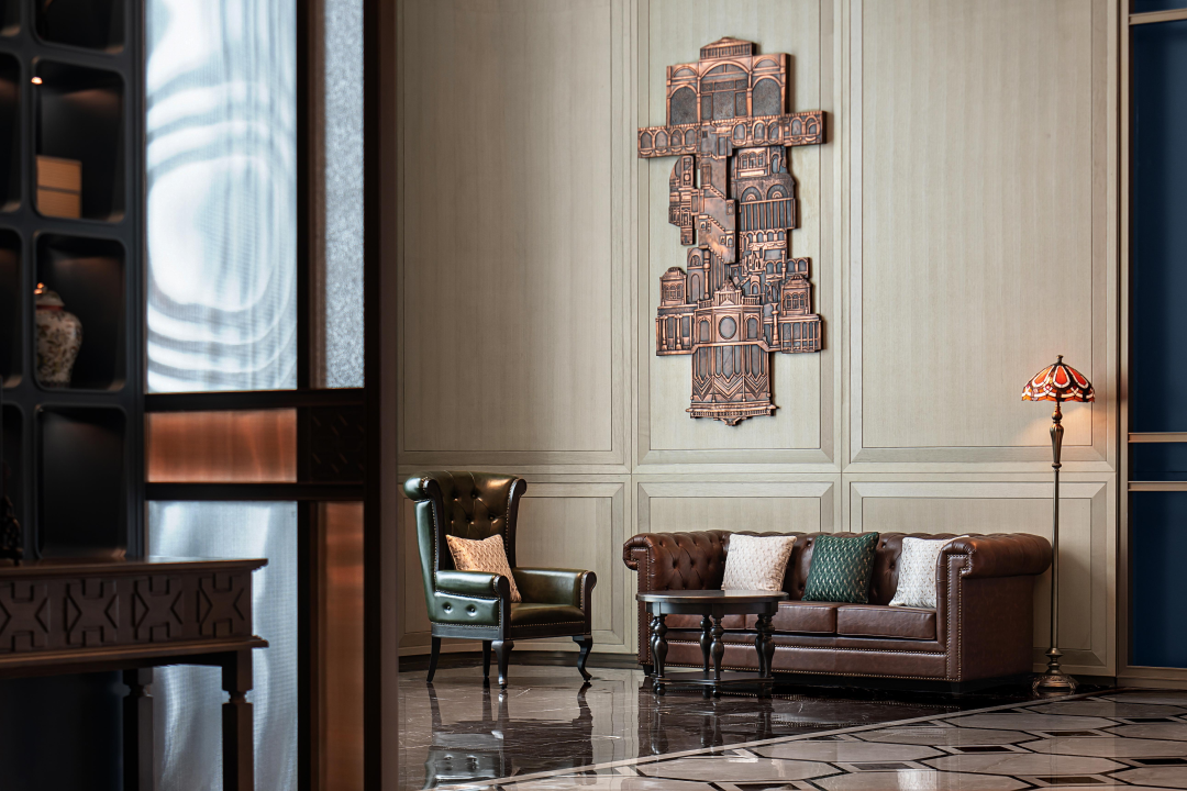 进入艺术大堂,优雅的选择楼梯,精致的西式线条搭配棋盘式的石材铺贴,优美的穹顶下,复古而不失时尚的艺术吊灯,周围环绕着是极具序列感的拱窗,每一个元素的运用都透露着深深的时代的烙印。
