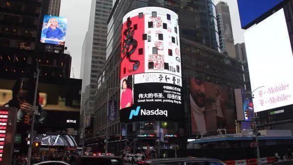 这位“书圣”似乎在国内玩得不够尽兴,还将广告打到了美国纽约时代广场,似乎想要将自己的生意忽悠成国际贸易。如果真能靠这个赚取外汇,那也算是种本事。但他这“江湖书法”的生意,估计也是做做样子,好借此在国内作为行骗的手段罢了。