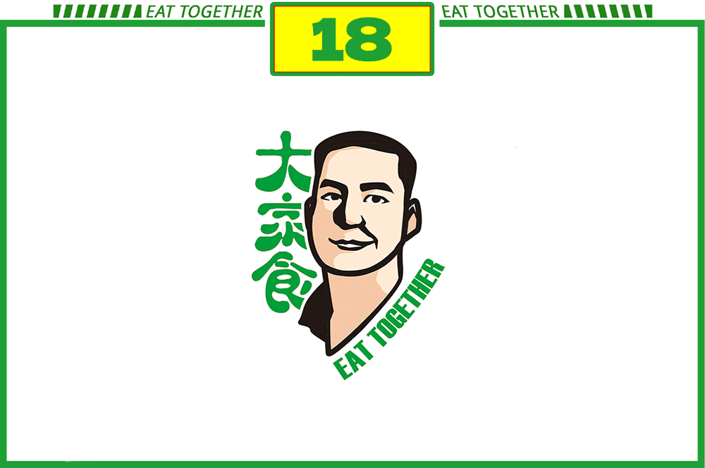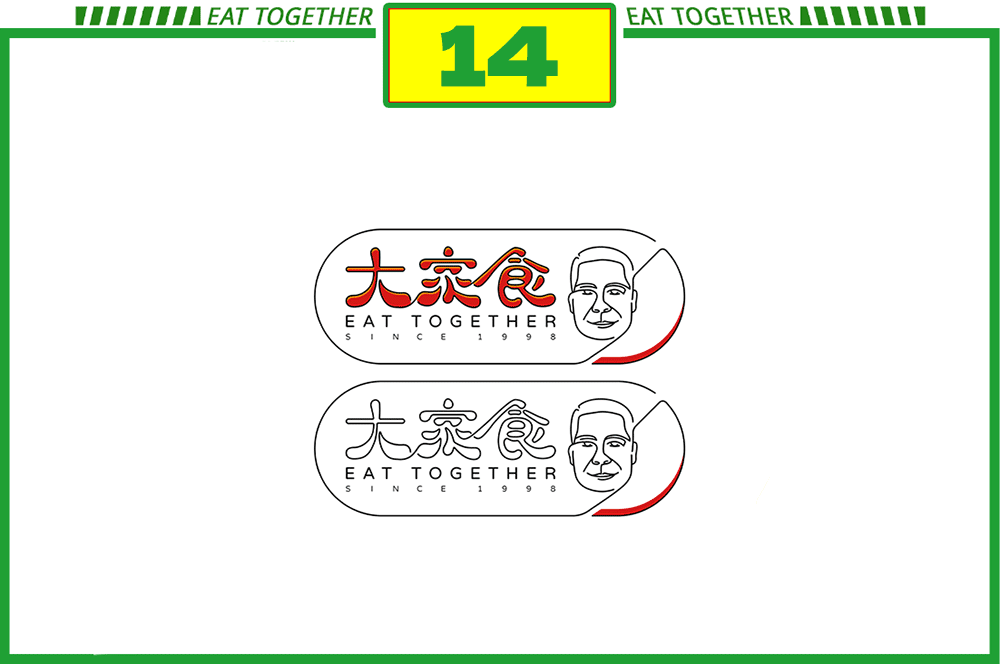 设计理念:整体的设计是以简约俐落的线条和色块作为基础。「大」和「家」连结成一个碗,加上弯曲的几何图形,组成一碗面,当中还构成一个字母「J」。「J」在「大家食」是代表幸运。另外,欢乐开心的设计是以EAT TOGETHER中间的2个「T」设计成一个笑脸,代表快乐满足。最后,创办人吕茂正先生的头像和幸运「J」主要以简约的线条重新创作。
