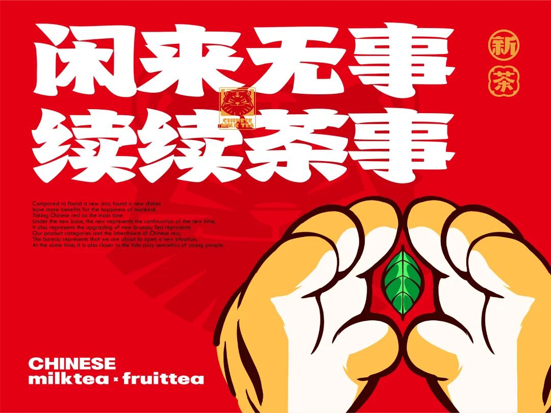 设计上,将字形体积调整宽度,使整个标志间架结构更有力量、更有气势;笔画为传统宋体变形,更突显中式文化属性,力求从标志上阅读出品牌对产品研发的决心与力量。品牌色采用冷暖色彩碰撞。中国红碰撞江南粉绿,将产品“中国味”与“从江南走出的本土茶饮品牌”属性相结合,进行立体而直接的表达,突破人们传统“红配绿”色彩观念。