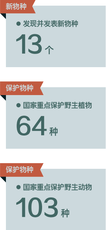 其中,发现并发表新物种13个,国家重点保护野生植物64种,国家重点保护野生动物103种。如此庞大的数量足以证明丽水极为丰富的生物多样性。