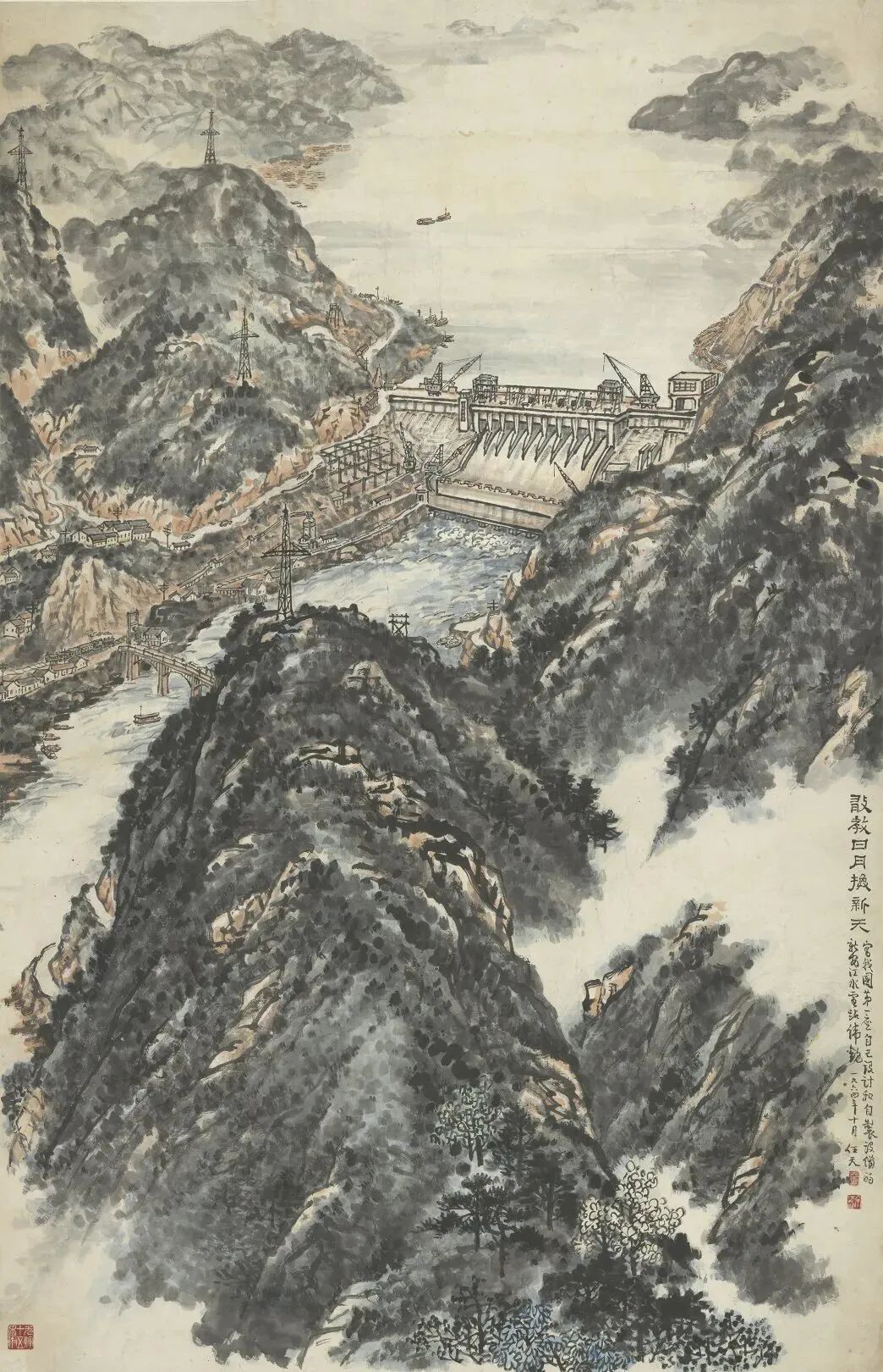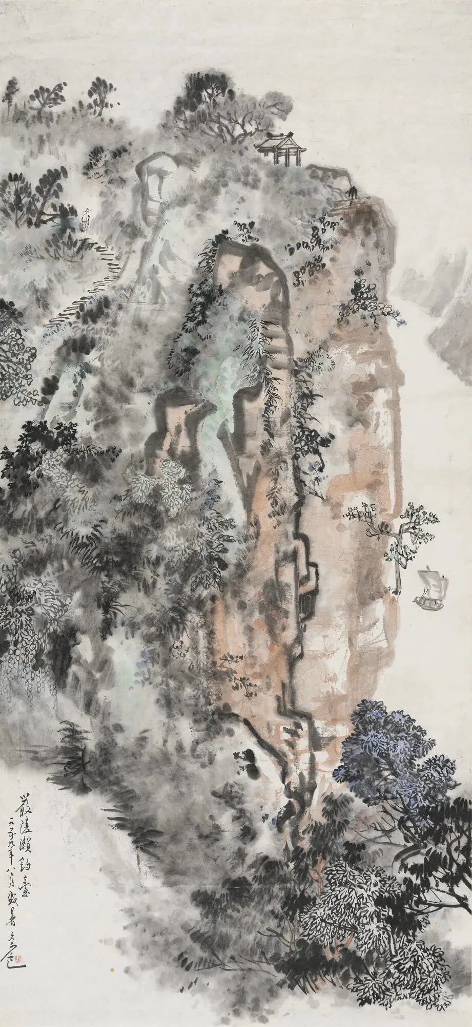余任天 严陵濑钓台 中国画