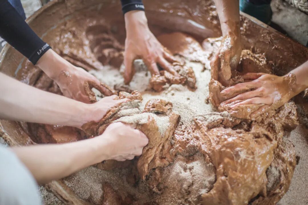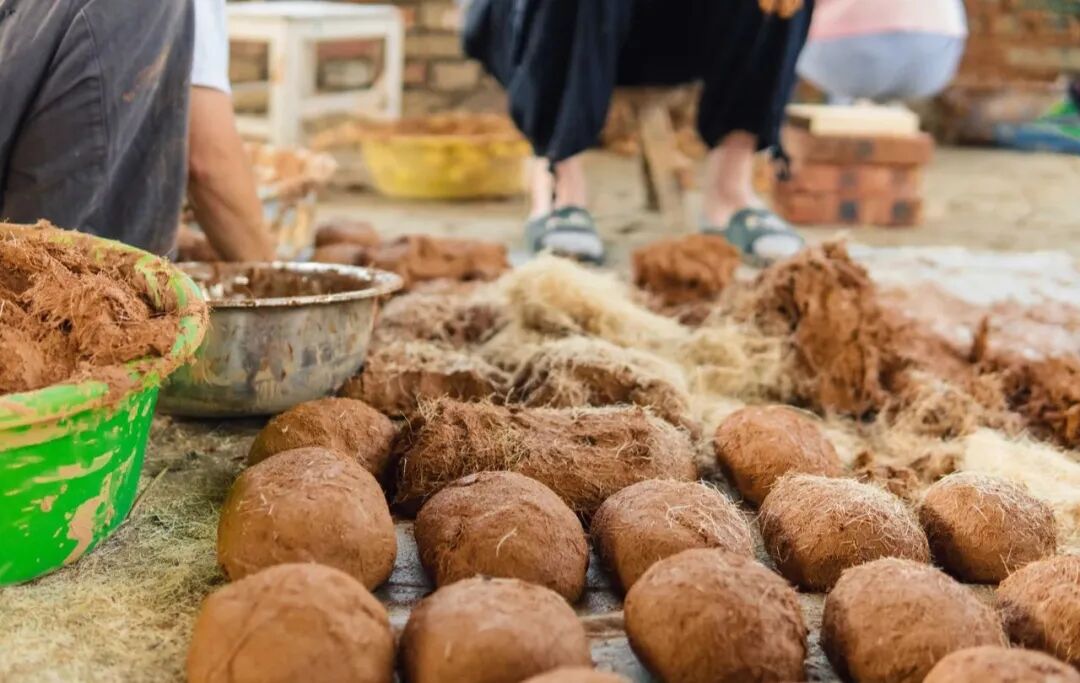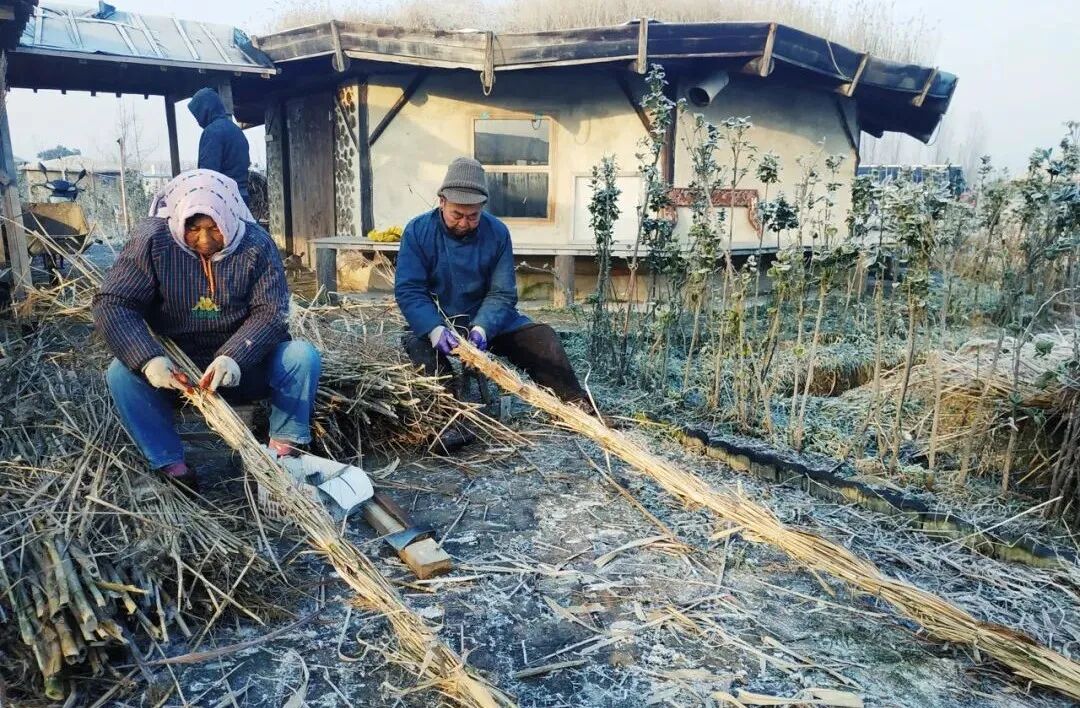 慢慢地,我们也在探索,本地有没有传统的建造方式,能运用到我们的建造中来?请村里七八十岁的老人,教给我们50年前的建造技术“推把子(注:以芦苇为建造材料)”,来造螺旋顶圆屋的墙。
