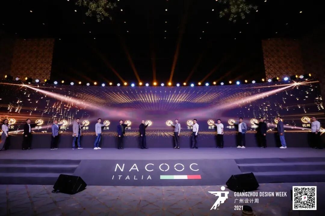 在现场所有来宾的见证下,广州设计周CEO 贺文广先生、NACOOC那库家居CEO 曹岩先生与来自全国12个城市的12位那库分公司代表一同上台,正式启动2022GRP中意国际设计金指奖·巡回推广。