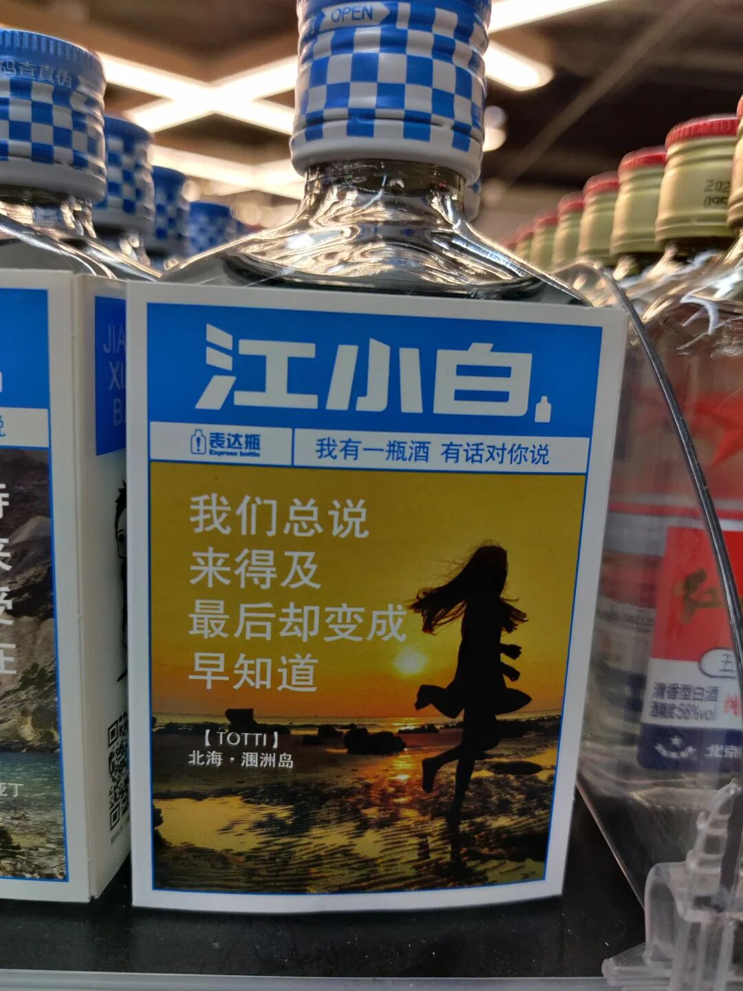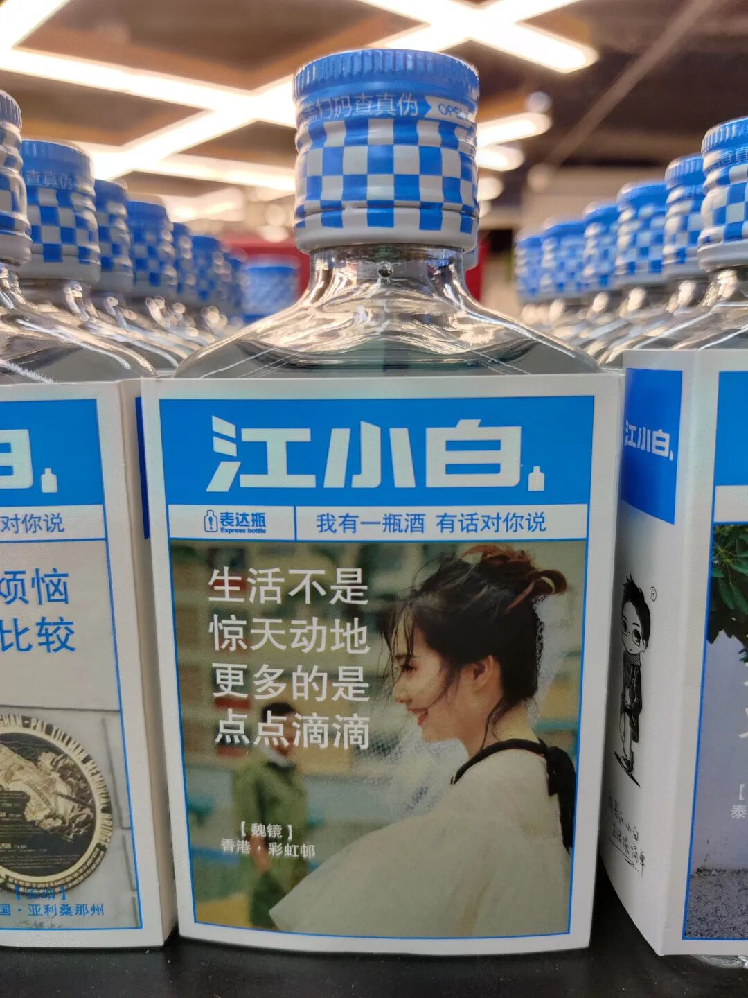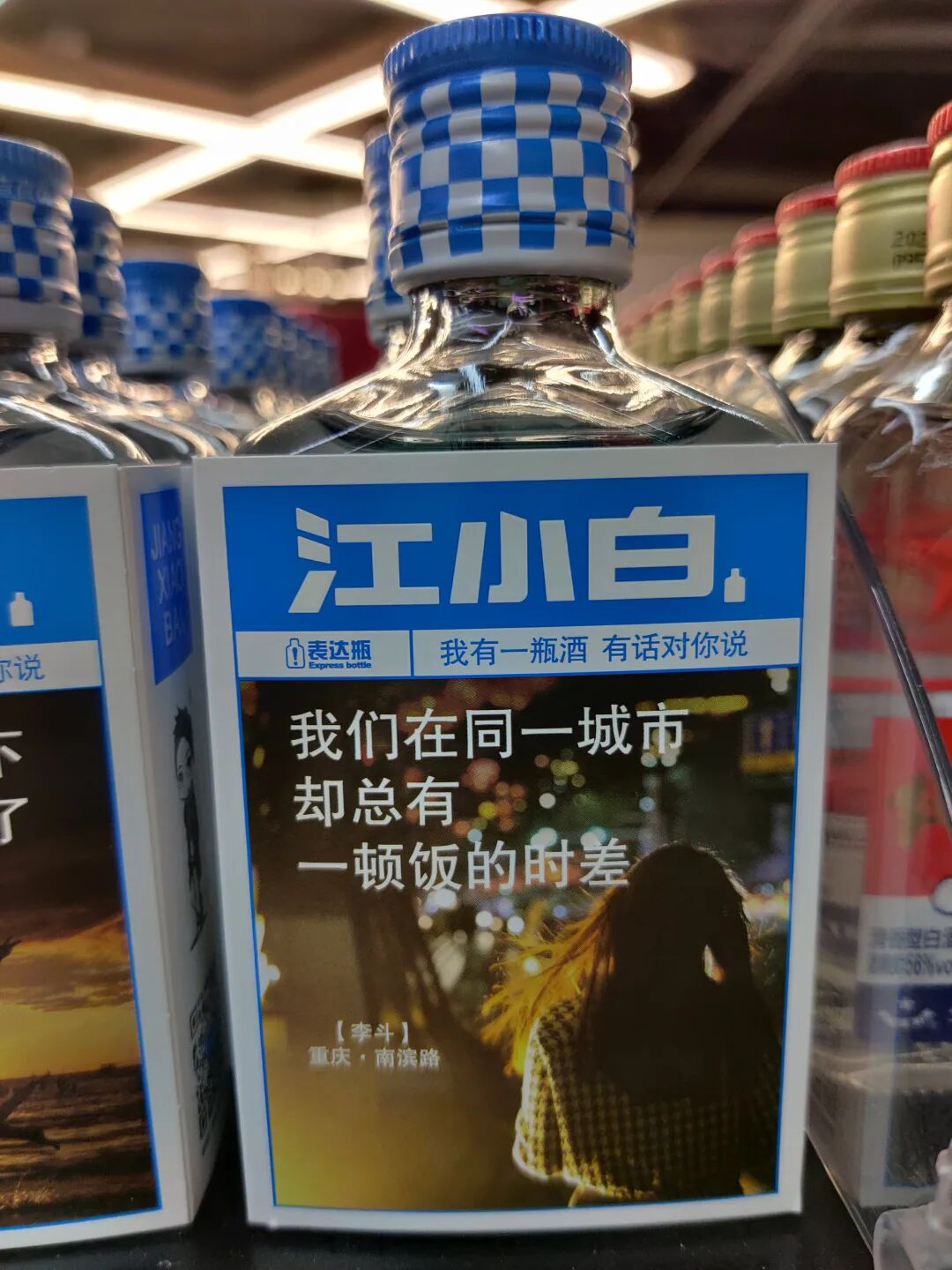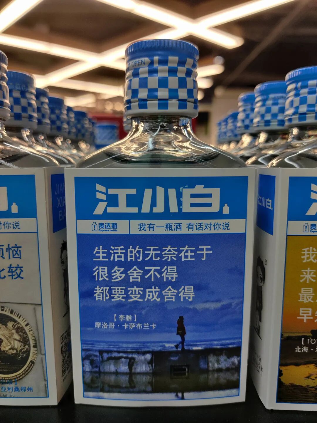前几天逛超市,看到江小白表达瓶,于是看了看瓶身上的文案。