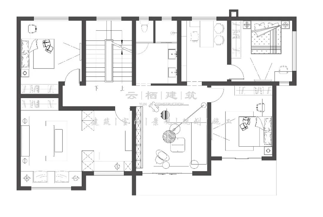 总共设计了六间卧室,根据空间属性的不同,分别配备了不同的家具组合,以实现各自的空间效果和层次。