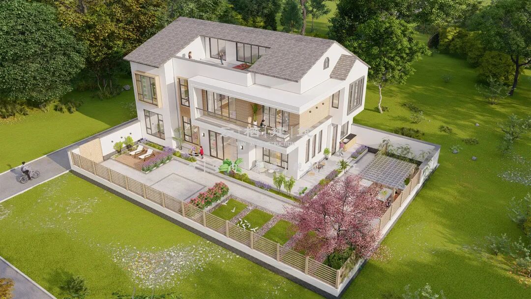 该项目位于江西九江,主体为二层+阁楼的现代风别墅。