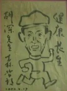 答:修军还给我写了几个字,写个“绝艺惊天”几个字,他欣赏这个东西的话,给我们全家还写了几个字。修军的对头猫感兴趣,他喜爱这个东西,还给我画了个对头猫,我现在都保存咧。修军对这个么也很欣赏。因为咱们这个东西色彩鲜艳,非常夺目,有些东西造型大是大。小是小。样式比较多样。有些看了以后绿绿红红的,他的欣赏方面非常高兴。