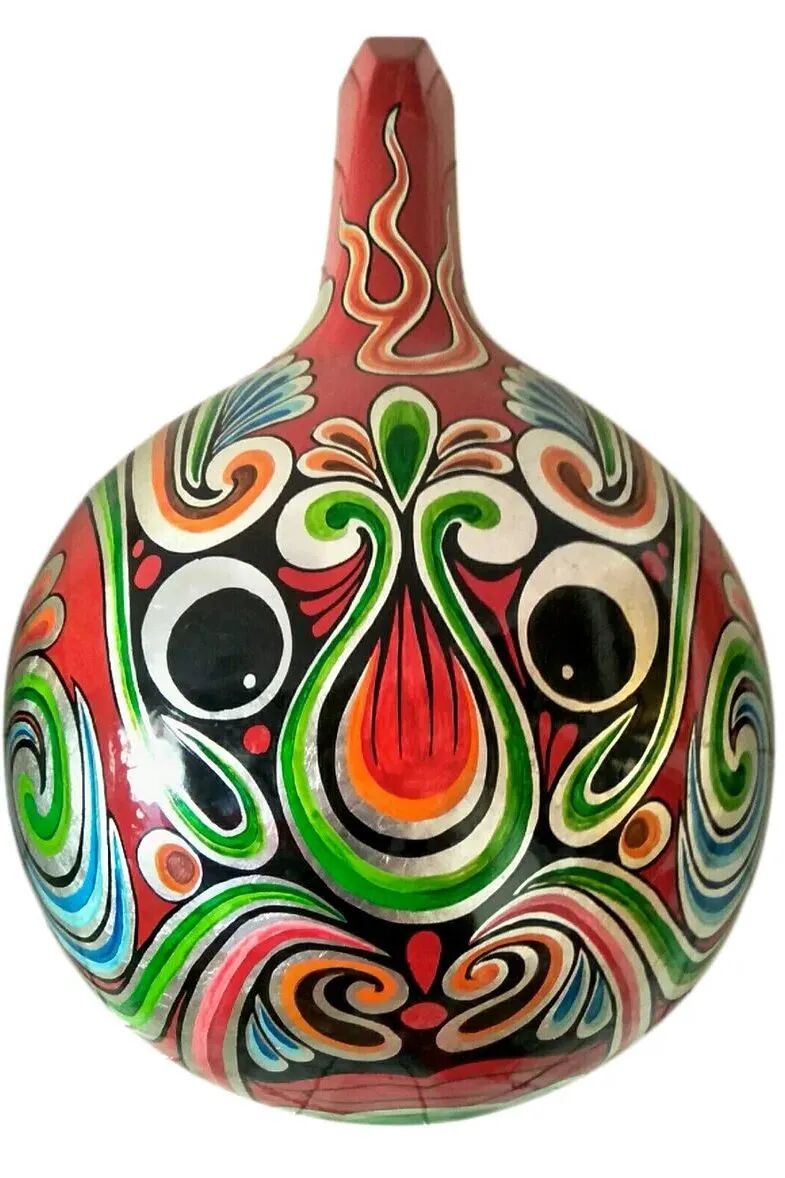 马勺是指木质的水瓢。据说此称的来源有两种说法:一是因水瓢多在马棚中舀水使用;二是因为古代行军打仗时,水瓢多挂在战马身上,故有此称。圆形用来盛水,方的用来盛马料。其可能发源于夏商时期。马勺的制作俗称“掏马勺”,它用桃木、春木等作为材料,运用“刳”的手法将整浑的木料进行掏挖,做成类似瓢的形制。民间讲究马勺要用柳木做,除了“湿不涨,干不裂”的特点以外,还有“柳”同“溜”谐音的讲究,暗喻灾邪与之“躲溜”之意。西南地区讲究“柳木马勺,桃木剑。”桃柳结合,柳木做的吞口,嘴里插的剑就是桃木做的。辟邪用的马勺脸谱多用柳木和桃木制成,含有辟邪的民俗意义。马勺上的图案是人们为了使自己的牲畜免遭大自然病虫的侵害,以保证自己能够在马牛的帮助下平安生存,并过上美满的生活而刻画的神灵符咒。