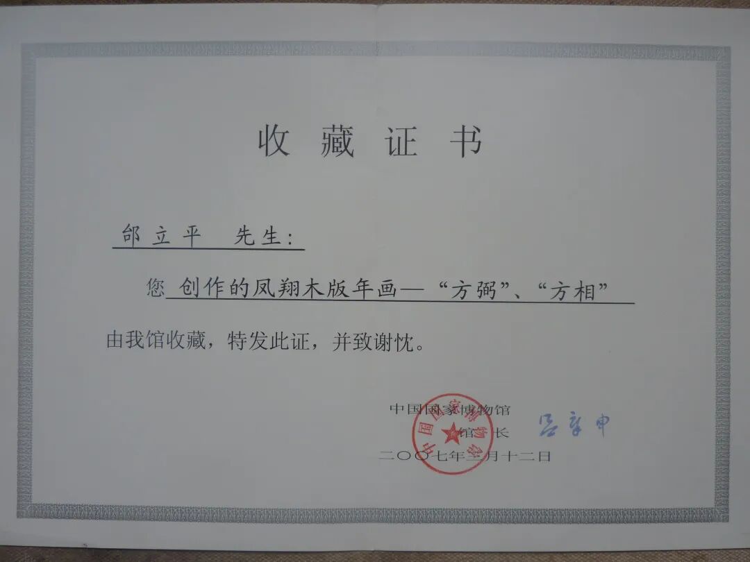 邰立平木版年画中国国家博物馆收藏证