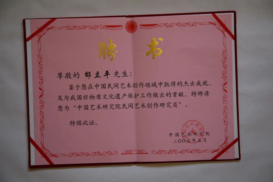 邰立平中国艺术研究院“民间艺术创作研究员”聘书