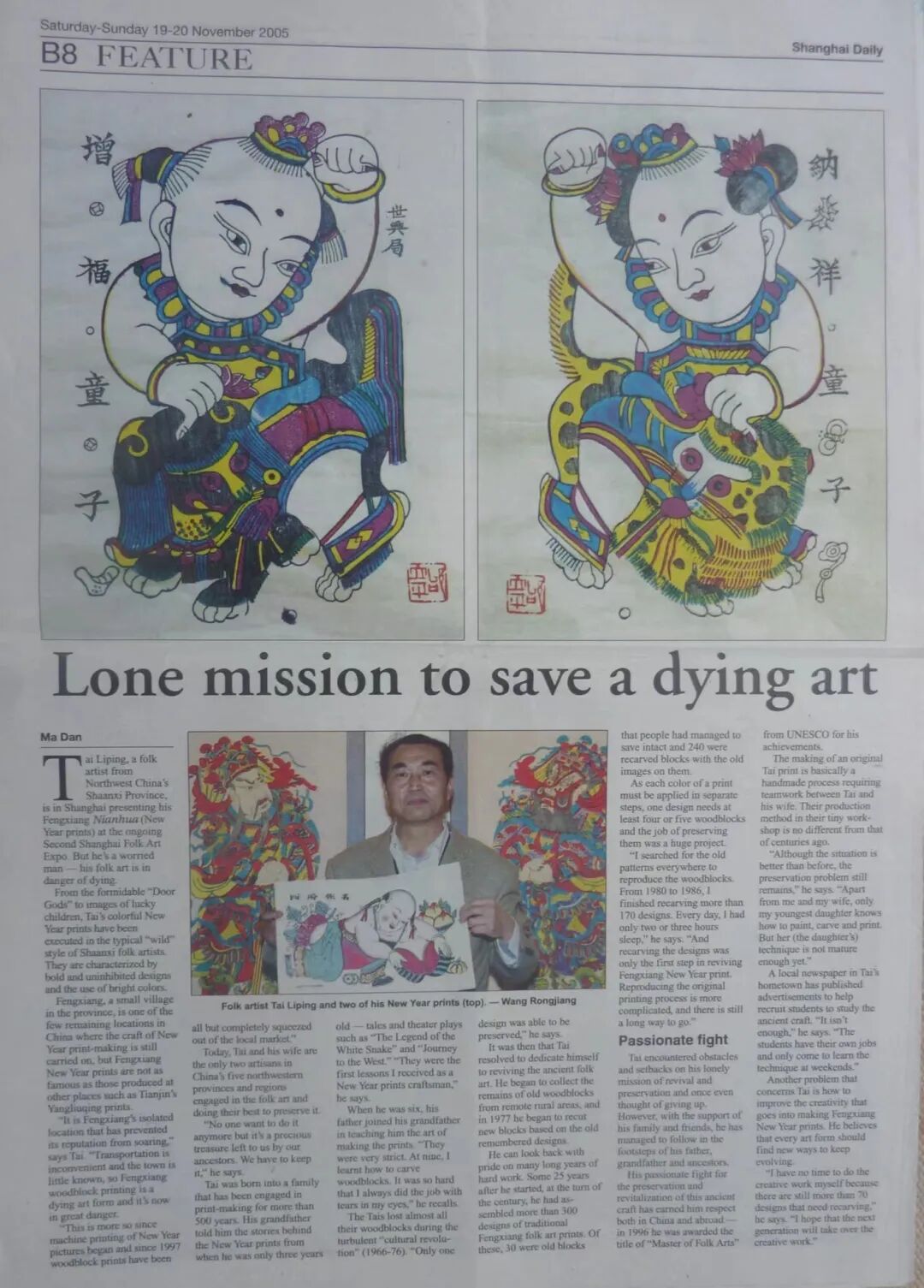 上海日报英文版报道邰立平木版年画