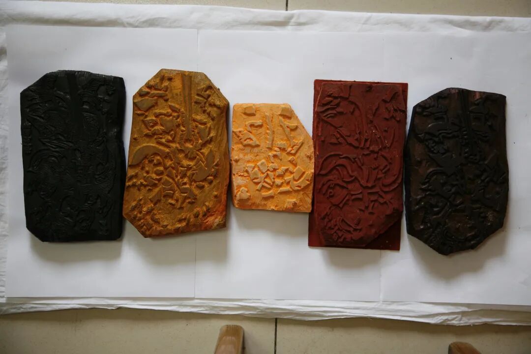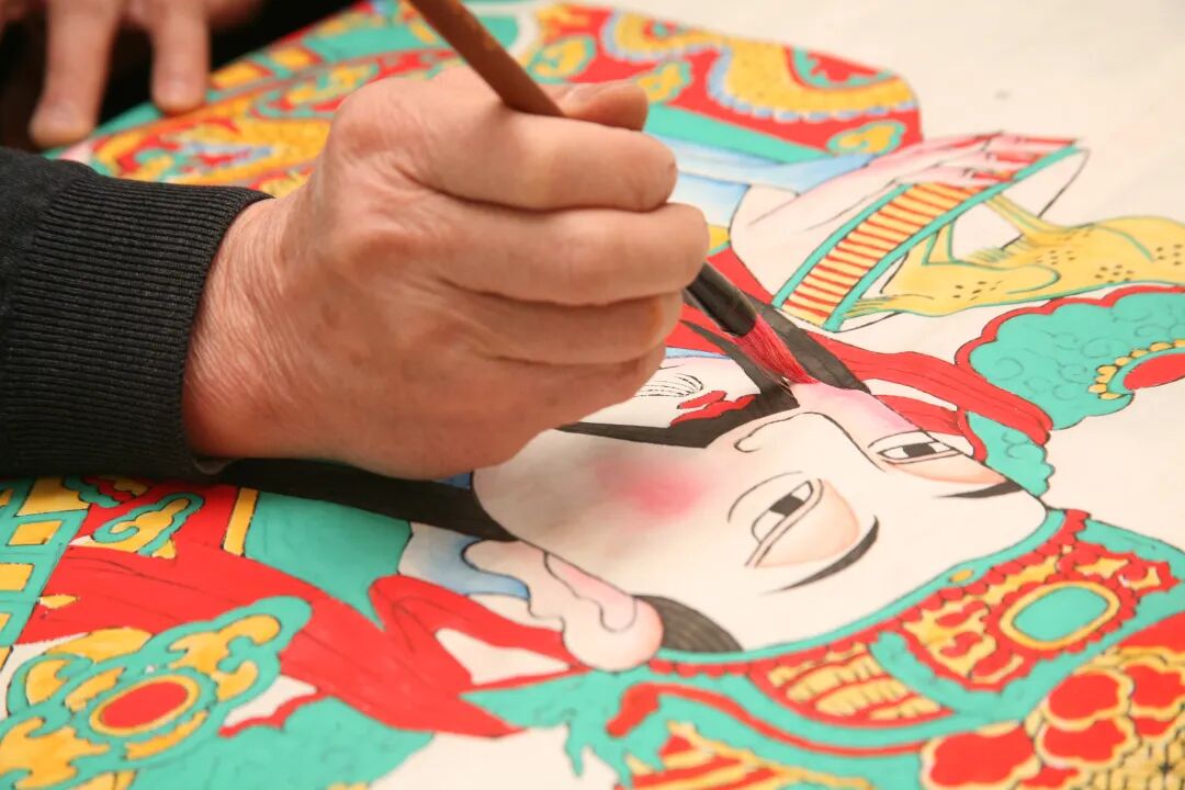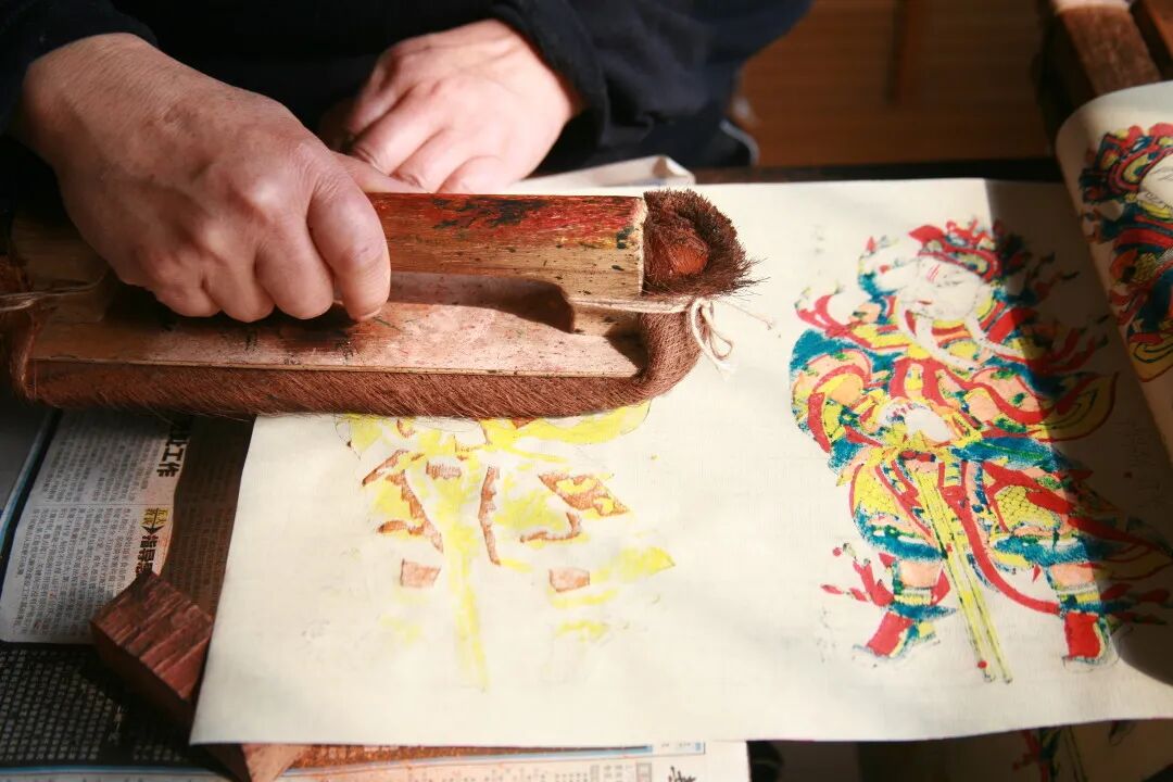 凤翔年画的制作过程主要分为起稿、贴版、刻线版、分色版、印刷等步骤。