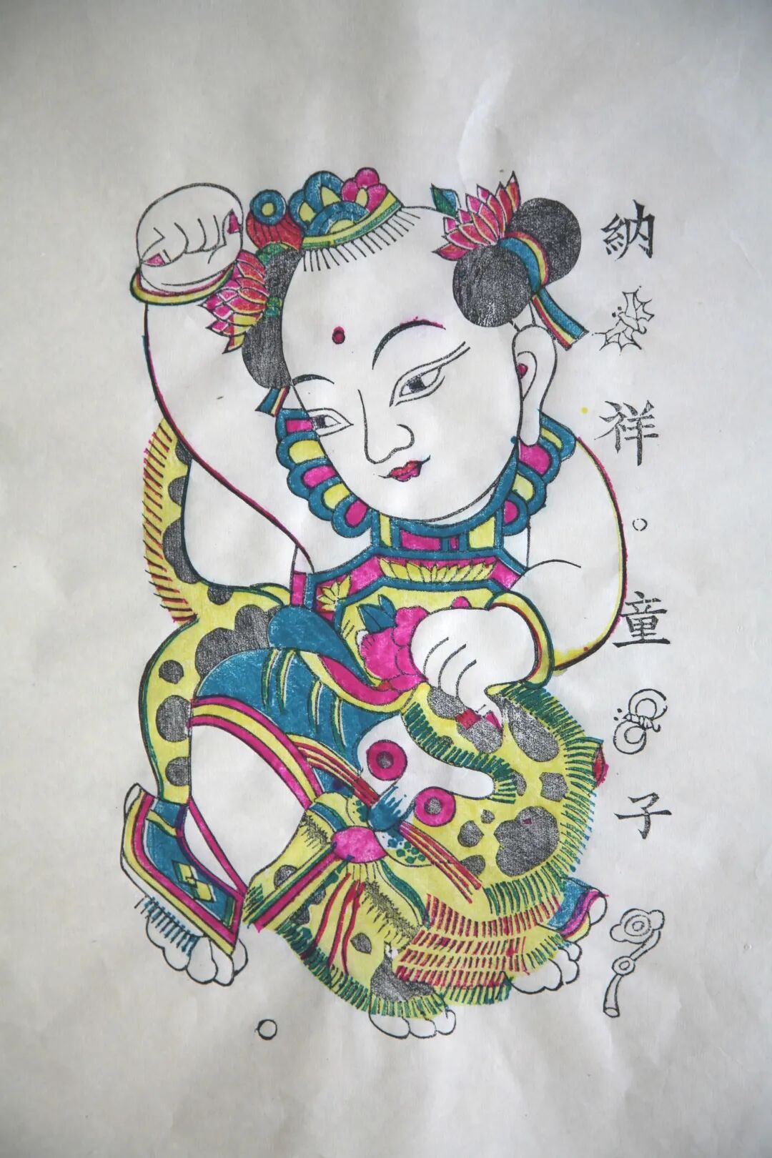 (右)纳祥童子 木版水印 高36cm 宽24cm 宣纸