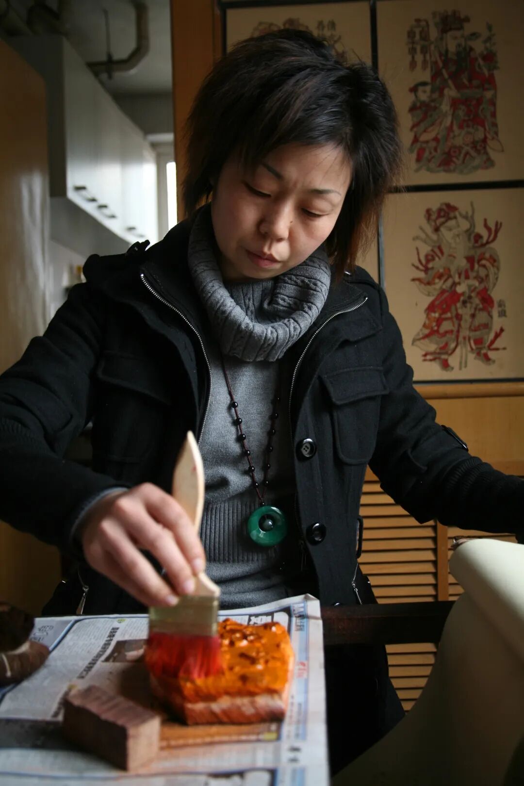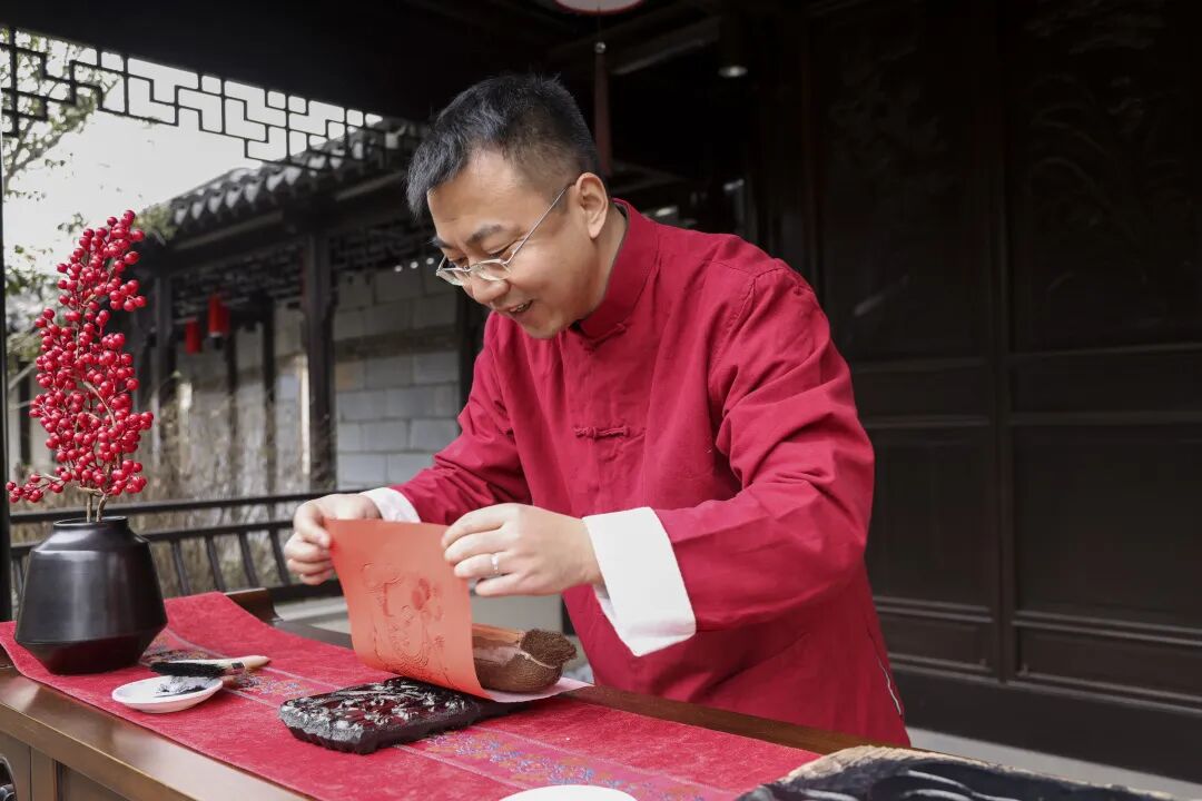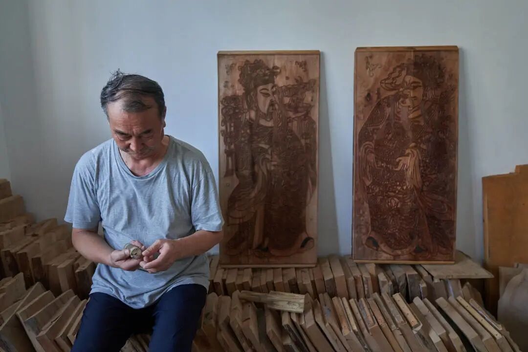 邰立平在印制木版年画