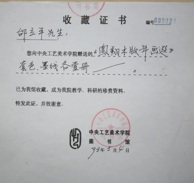 邰立平木版年画中央美院图书馆收藏证