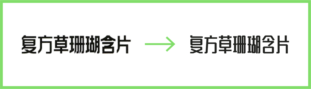 在包装的字体视觉资产策略上,我们保留了中文字体的整体感觉,在它的基础上,对于笔画、字体宽度及视觉整体等方面,进行了调整,调整后的中文字体与之前相比,不会感觉上偏差很大,反而更加规范和整体: