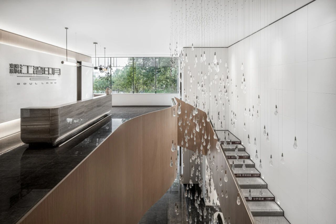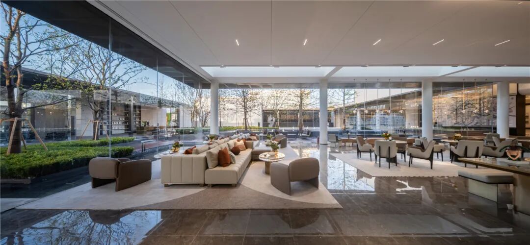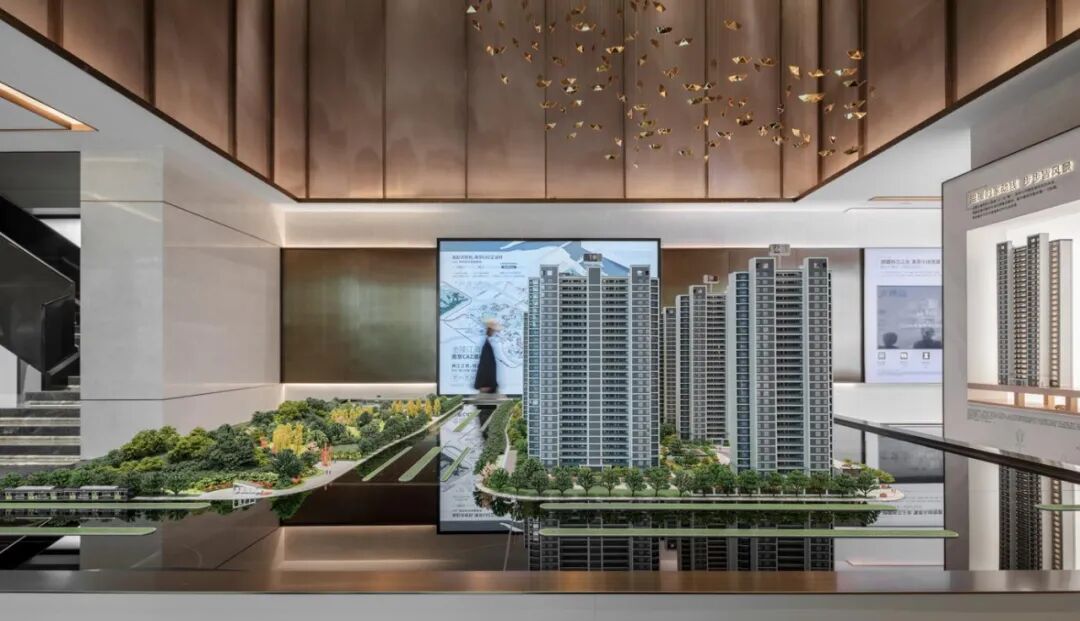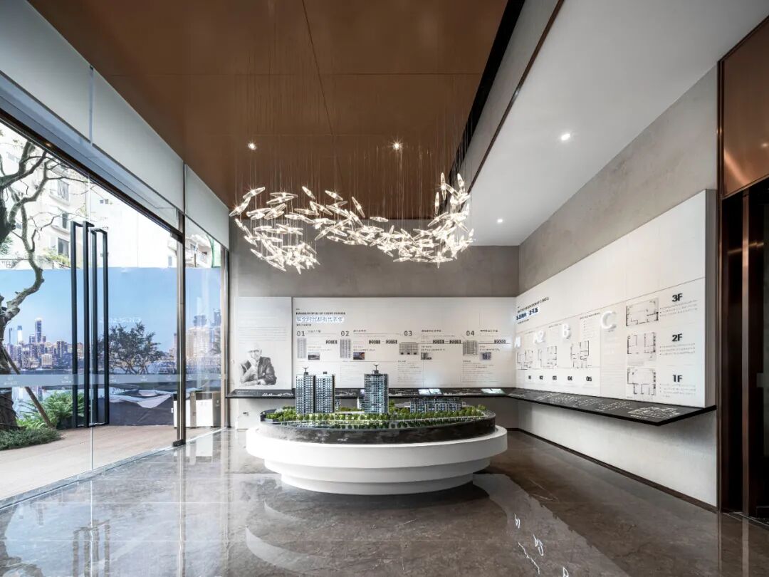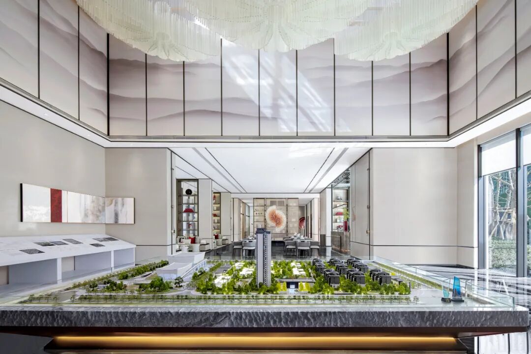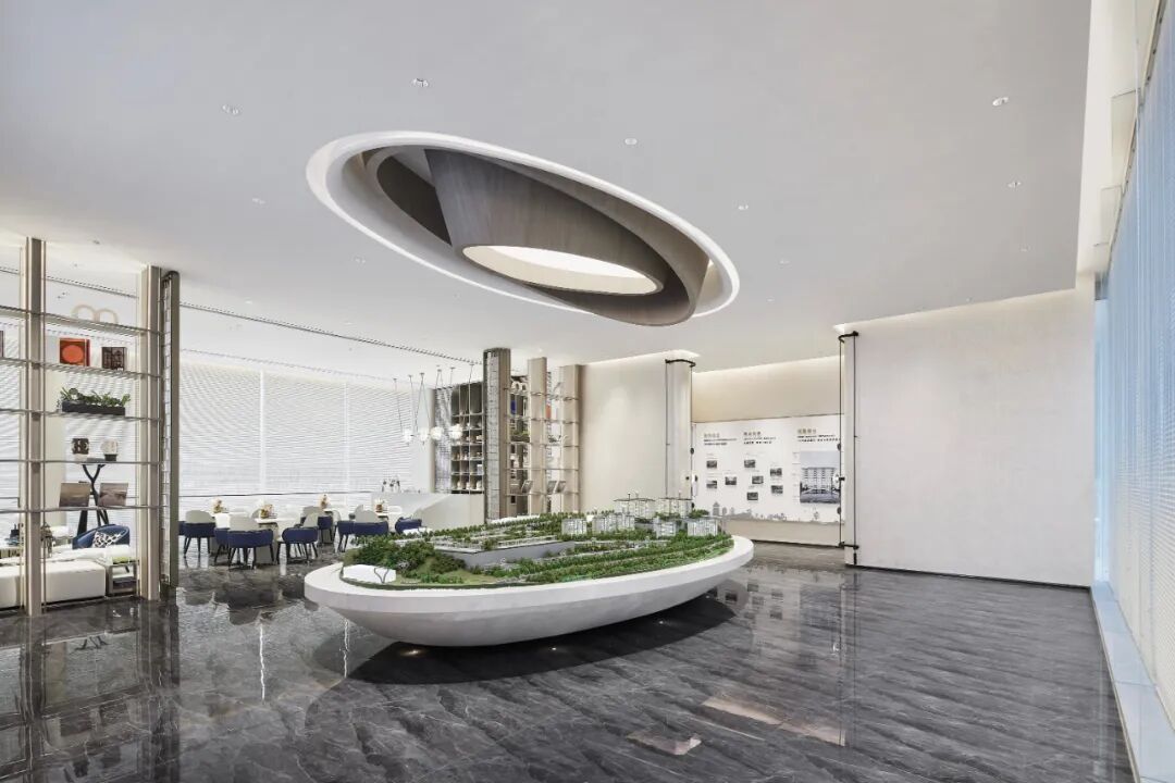 售楼处内部以回游型体验设计,打造一步一景,一景一情,在藏与露、渗透与交叠之间,让自然与空间共生。