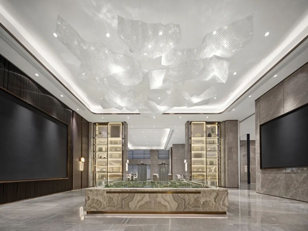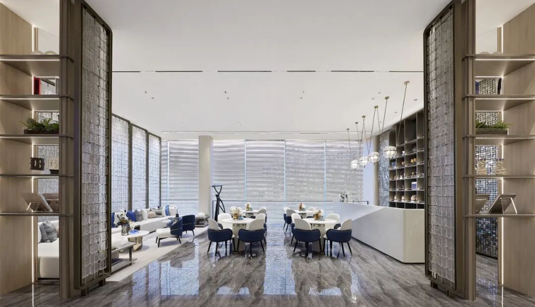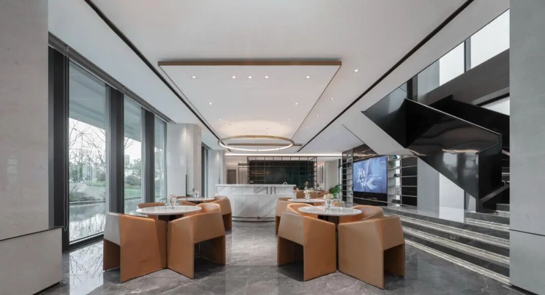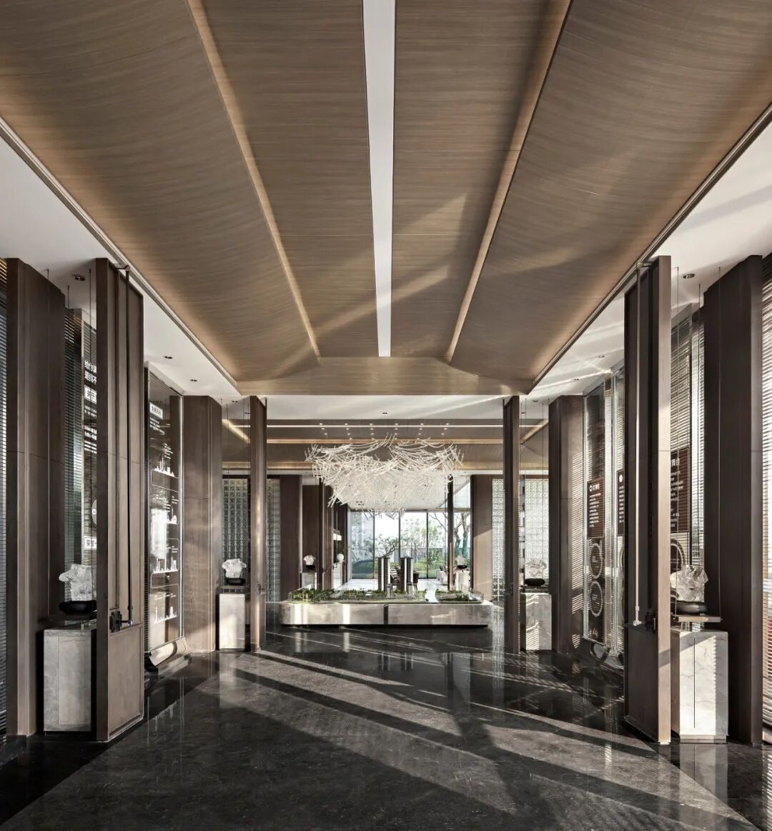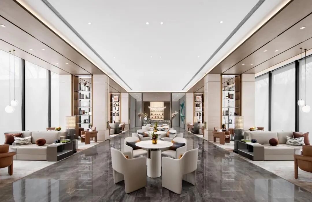 售楼处内部以回游型体验设计,打造一步一景,一景一情,在藏与露、渗透与交叠之间,让自然与空间共生。