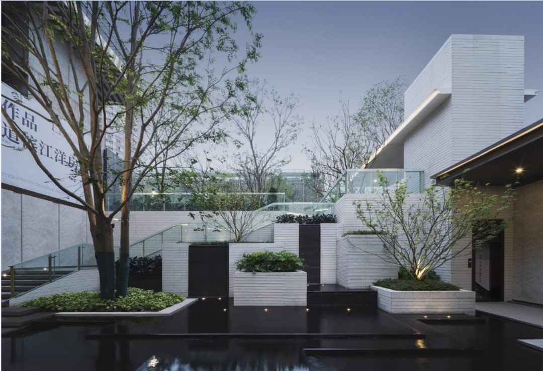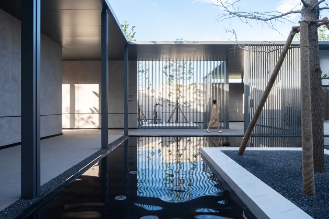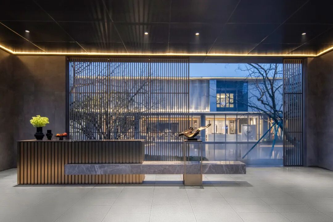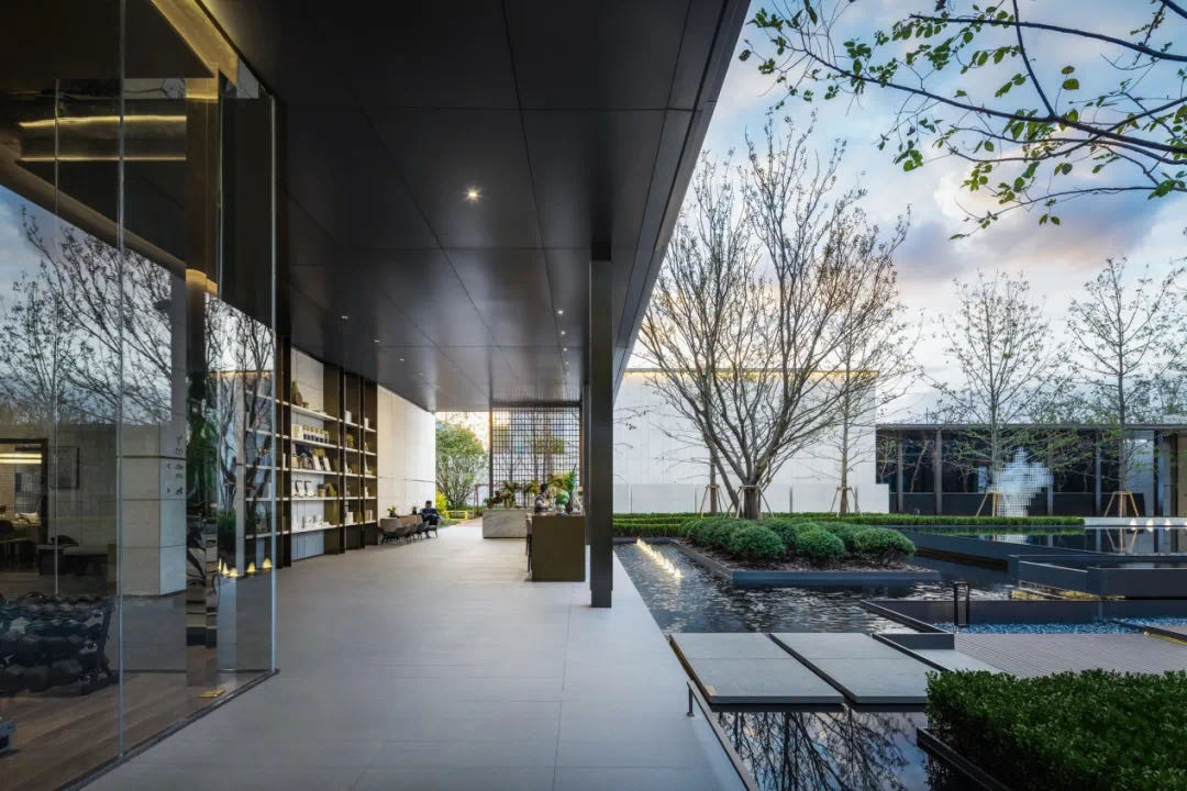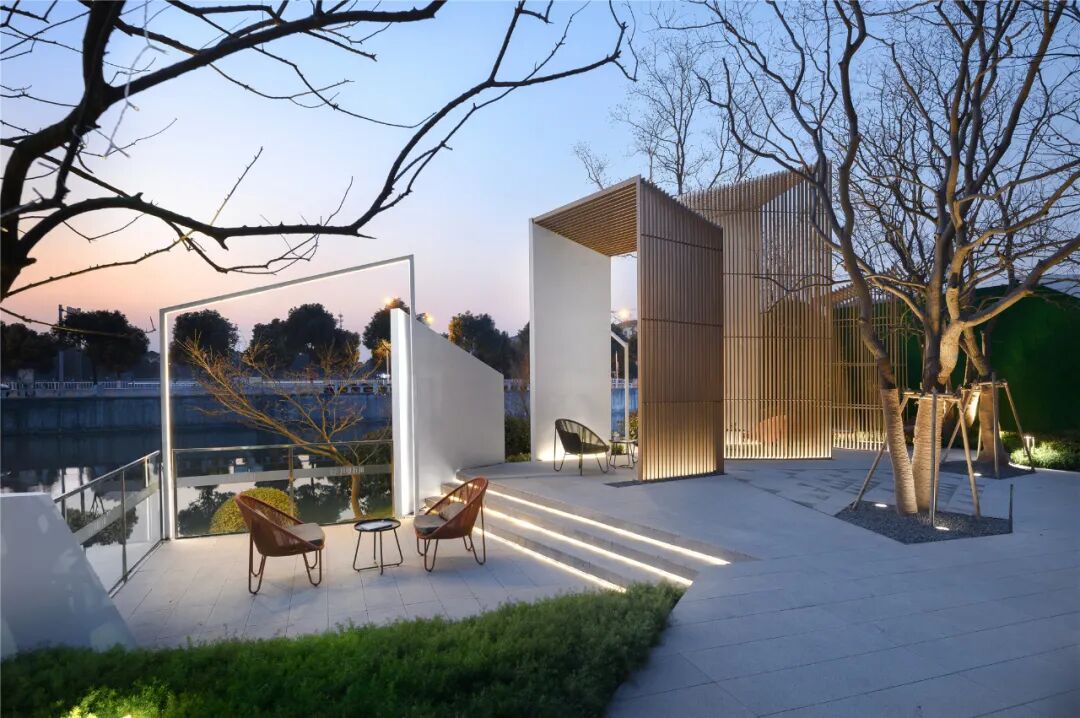 隐与现的设计手法营造出人与场景互动的趣味性,格栅景墙运用完成了对原有空间的重构,借此传递出一种简约、克制的生活观,是对中国园林空间美学的一次回应。