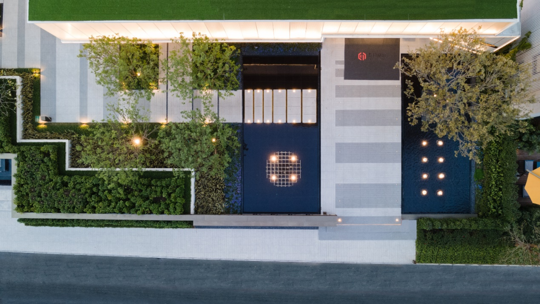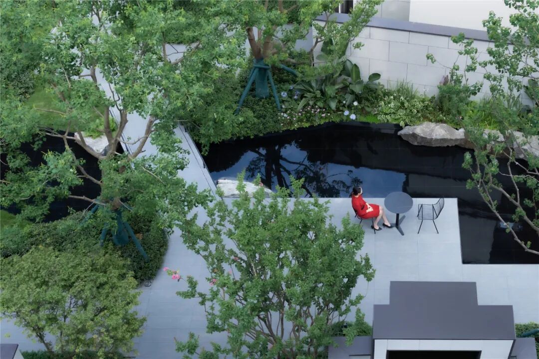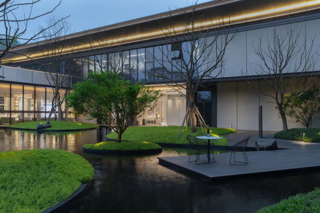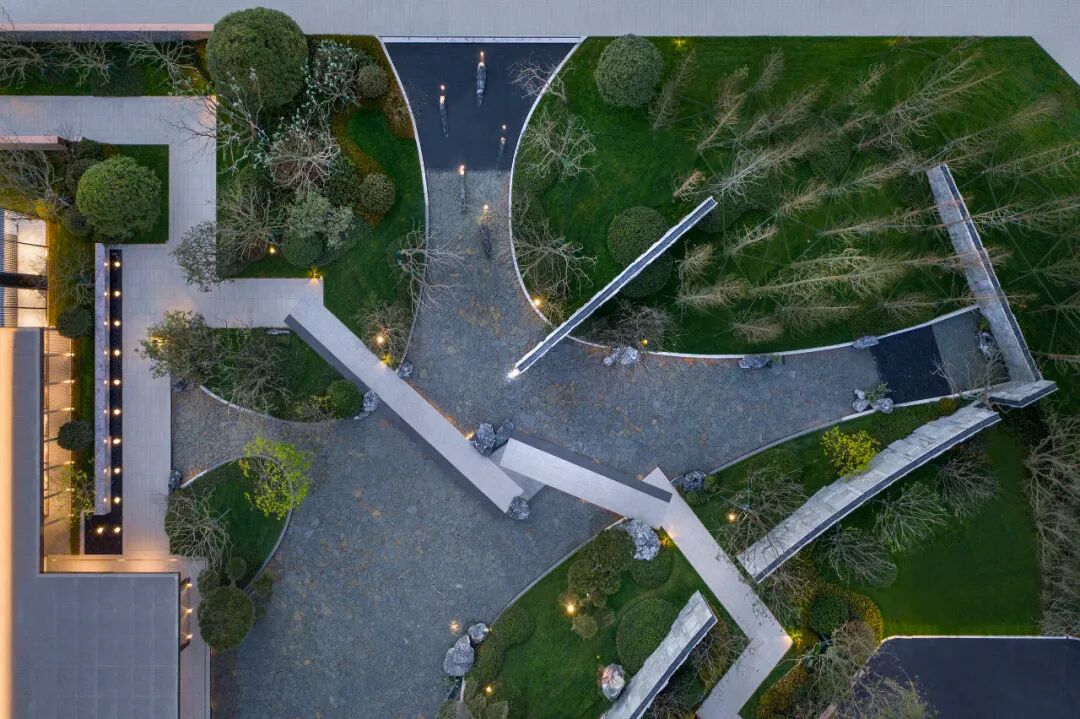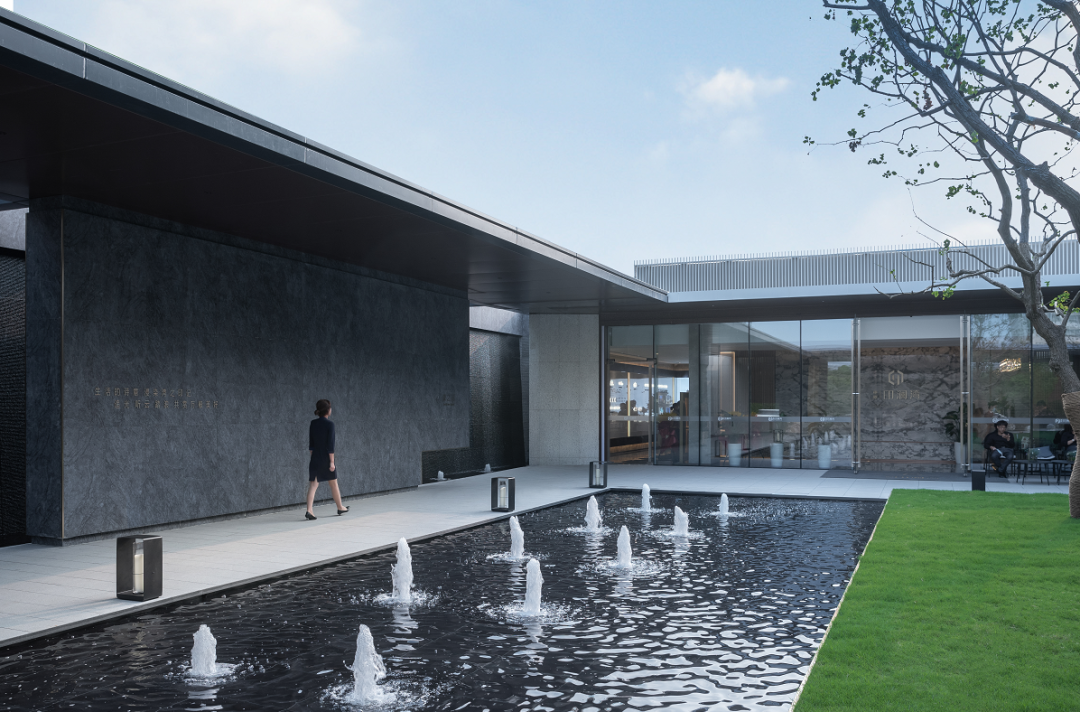 隐与现的设计手法营造出人与场景互动的趣味性,格栅景墙运用完成了对原有空间的重构,借此传递出一种简约、克制的生活观,是对中国园林空间美学的一次回应。