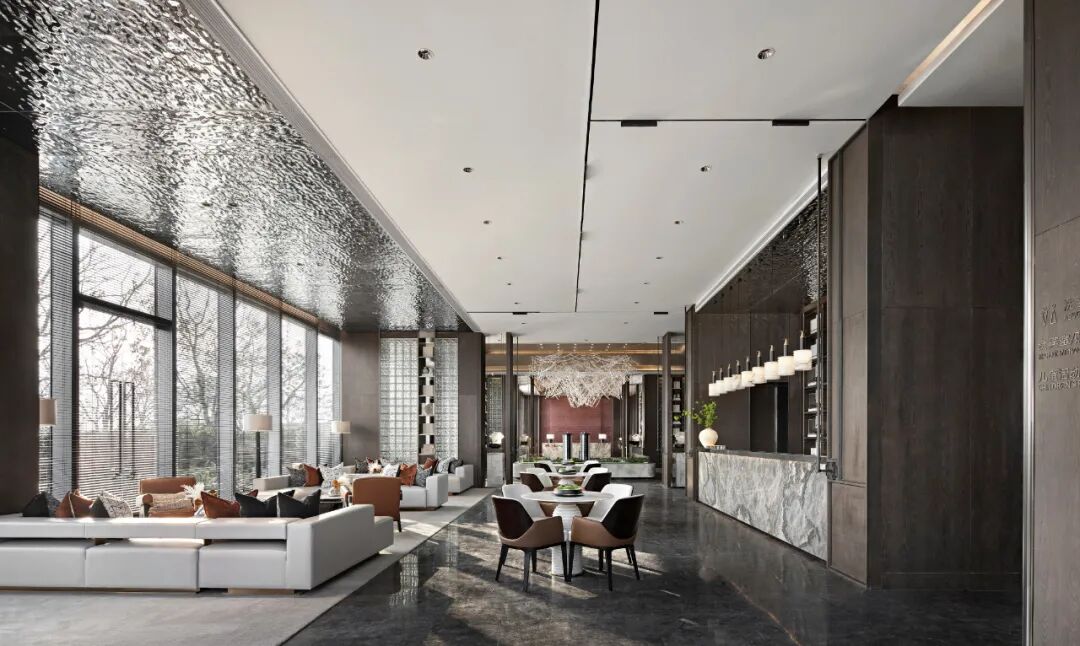 项目致力于将人居体验融入于设计之中。同时建筑、室内、景观多角度结合案名 “云栖麓”,以“生活与优雅”为设计基调,以自然之景,唤起居者视听觉、触觉和内心的体会变化,对自然、文化、艺术相结合的居住环境的向往。运用流畅的线条和水景的氛围营造轻奢、度假的栖息之所。