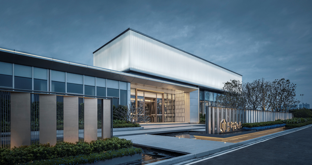 项目结合肇庆积淀浓郁的文化底蕴,以“玉石”为设计理念,玻璃盒子临近主干道面朝贞山湖,形成最好的城市展示面。