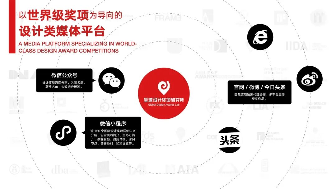 「全球设计奖项研究所」,以世界级奖项为导向的设计类平台。聚焦高端设计奖项动态,捕捉国际设计最新趋势,推动中国设计国际化参与,传播中国设计优秀实践。内容板块包括奖项资讯、申报指南、奖项主办方专访、获奖设计师专访以及各类专题内容策划。