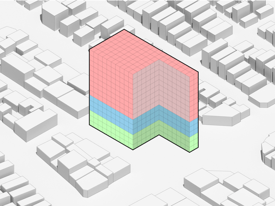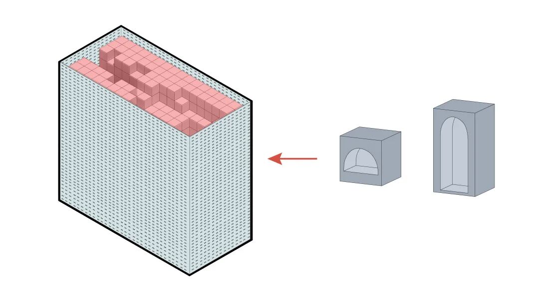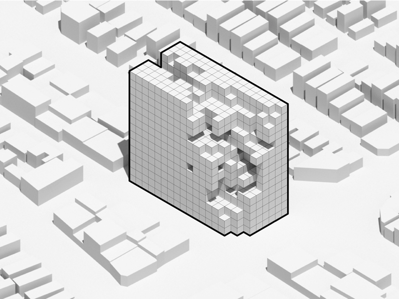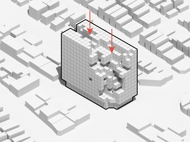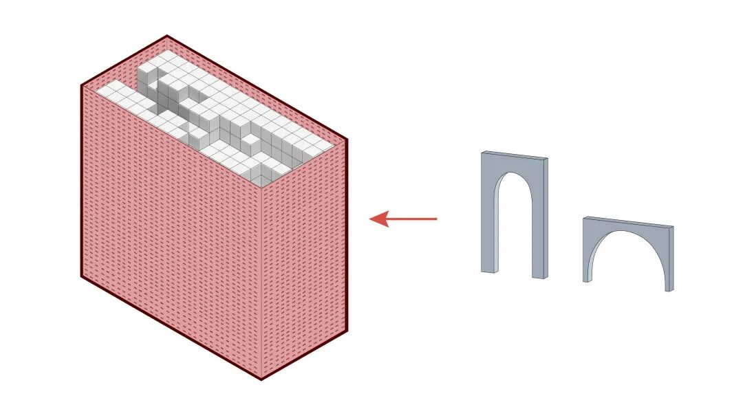为了实现更精准的切割大楼,设计师把建筑截割成了多个5m*5m*5m的立方体
