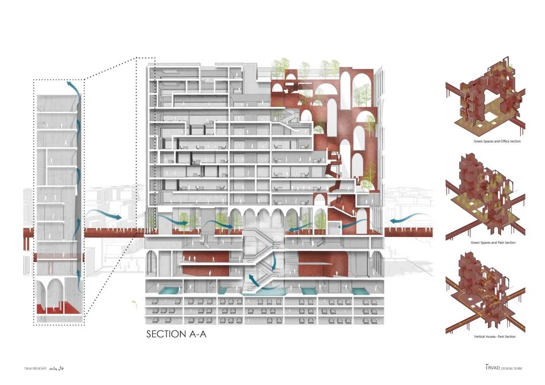 完成了这些准备工作之后,设计师把目光放在了如何建立起site 和Mellat Park之间的联系。