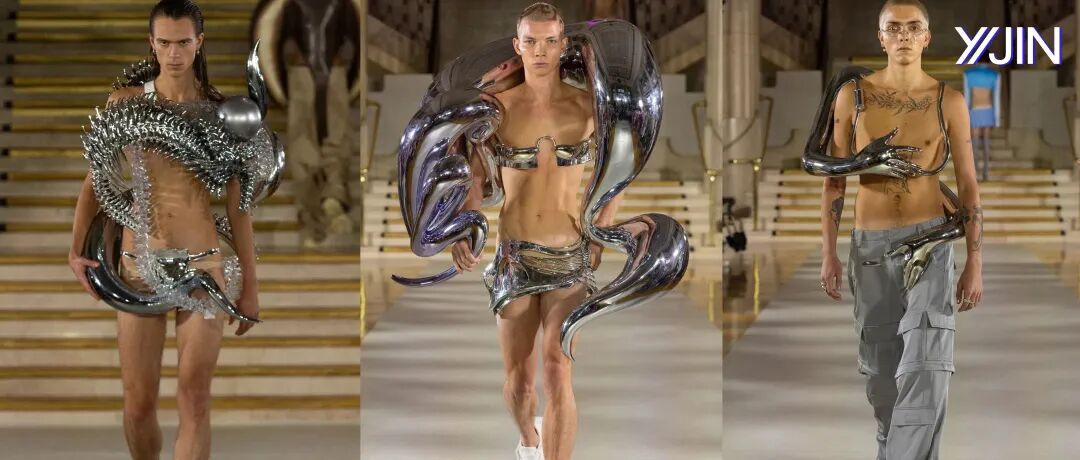 “骷髅”形象发展至今,已经成了现代人们喜闻乐见的一种形象,风格、形式都不受限制。可以很休闲街头,展现英式摇滚,也可以很高定礼服,通过面料建立服装自己的骨骼。可以像Iris van Herpen做出科技感满满的3D打印,也可以作为印花图案,或者用珠绣、刺绣、针织等方式作为服装的点缀装饰。