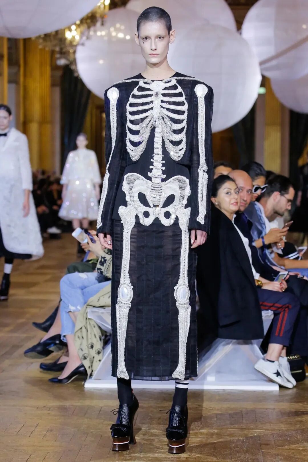 1938年,Elsa Schiaparelli设计了一件黑色的骷髅裙,这是设计师将这种本存在于人体内部,通过X射线才能观察到的结构视觉外化在服装上的最早案例之一。