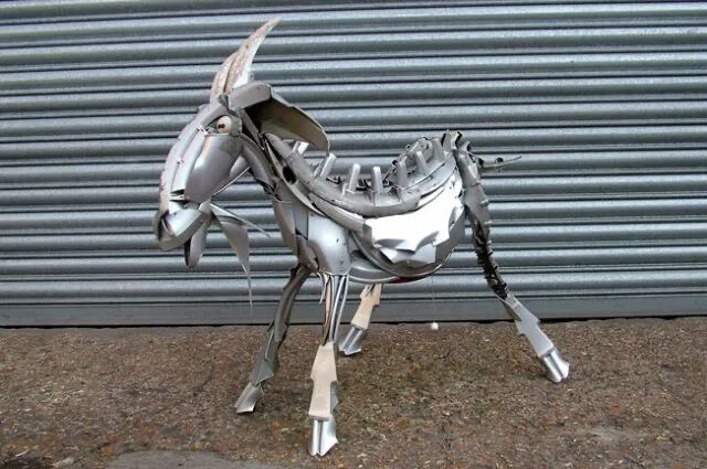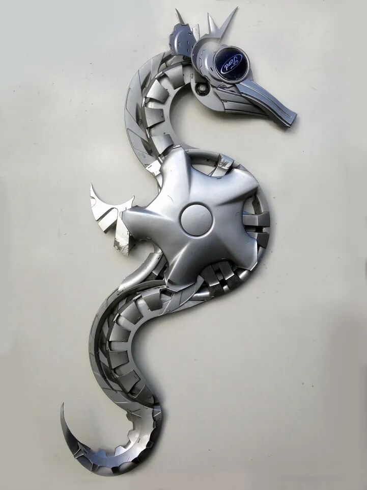用废品来创作艺术作品,已经不是什么新鲜事儿了,正因为如此,多了许多爱低头捡垃圾的艺术家,来自英国的托勒密·埃尔灵顿就是其中的一位,在闲暇的时候,他既不会去泡吧,也不会宅家刷剧,而是到处去捡垃圾,当然,不是什么垃圾都能进入托勒密·埃尔灵顿的“法眼”,只有废金属是这位艺术家最钟爱的。