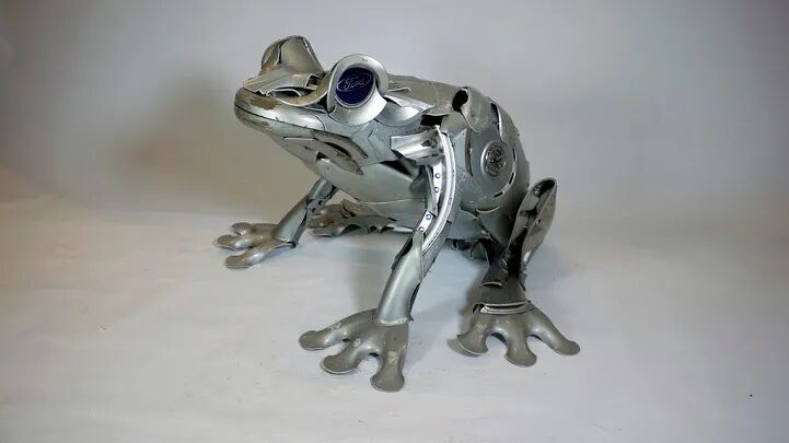 因为托勒密·埃尔灵顿是一位雕塑艺术家,他要用这些捡来的废金属,来创作金属雕塑作品,如今,用捡来的垃圾,托勒密·埃尔灵顿已经完成了一系列的动物雕塑,青蛙、老鼠、狼等,每一个都造型逼真,栩栩如生。