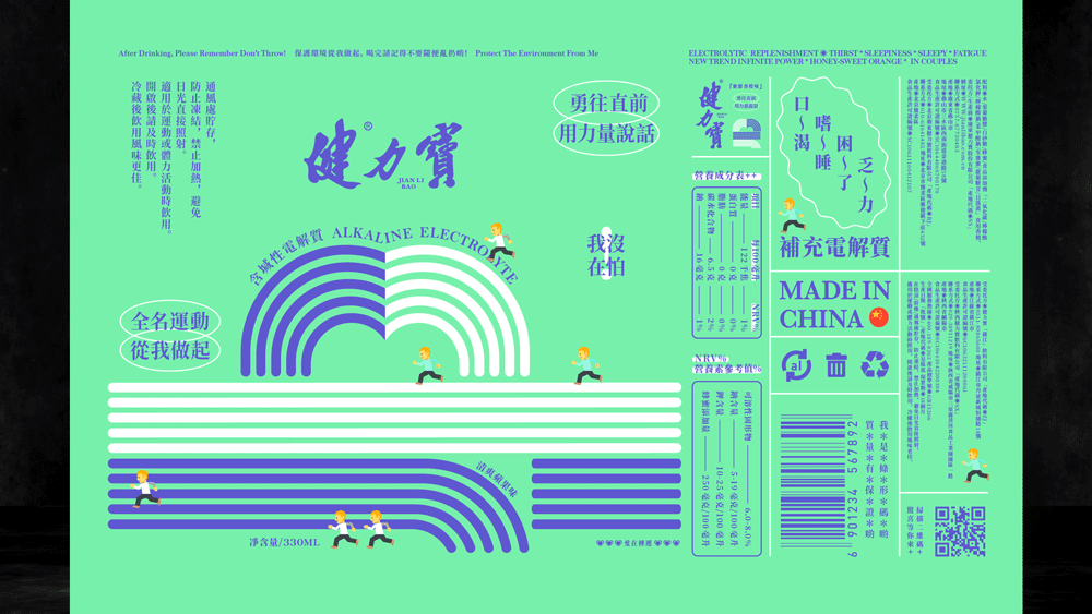 首先在LOGO设计上就围绕运动型功能饮料的性质