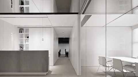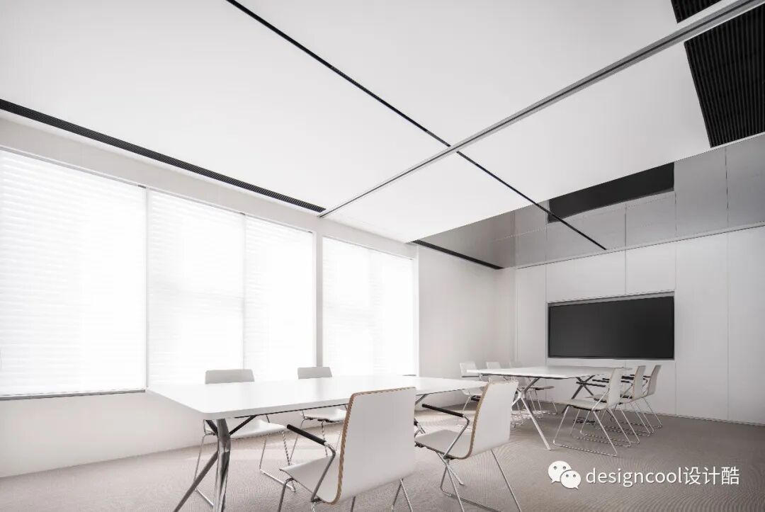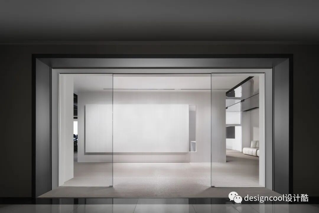 品牌理念与建筑理论在某种程度上不谋而合,也自然成为本项目设计的原则,在简洁的设计中创建空间的丰富性。会议区域移动的白墙,从功能、形式、技术等诸多方面塑造空间形体,在合并与抽离中实现空间的不同组合,迸发的空间仪式感,成为整体中最为灵动的一部分。