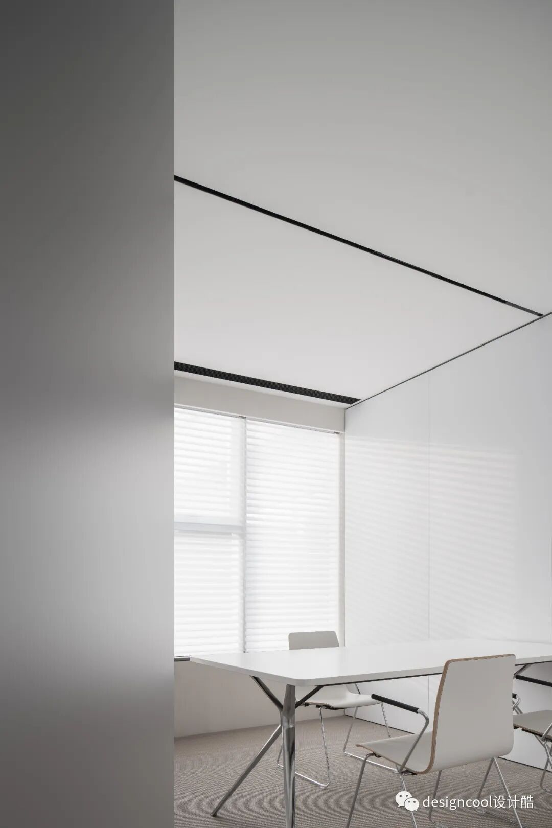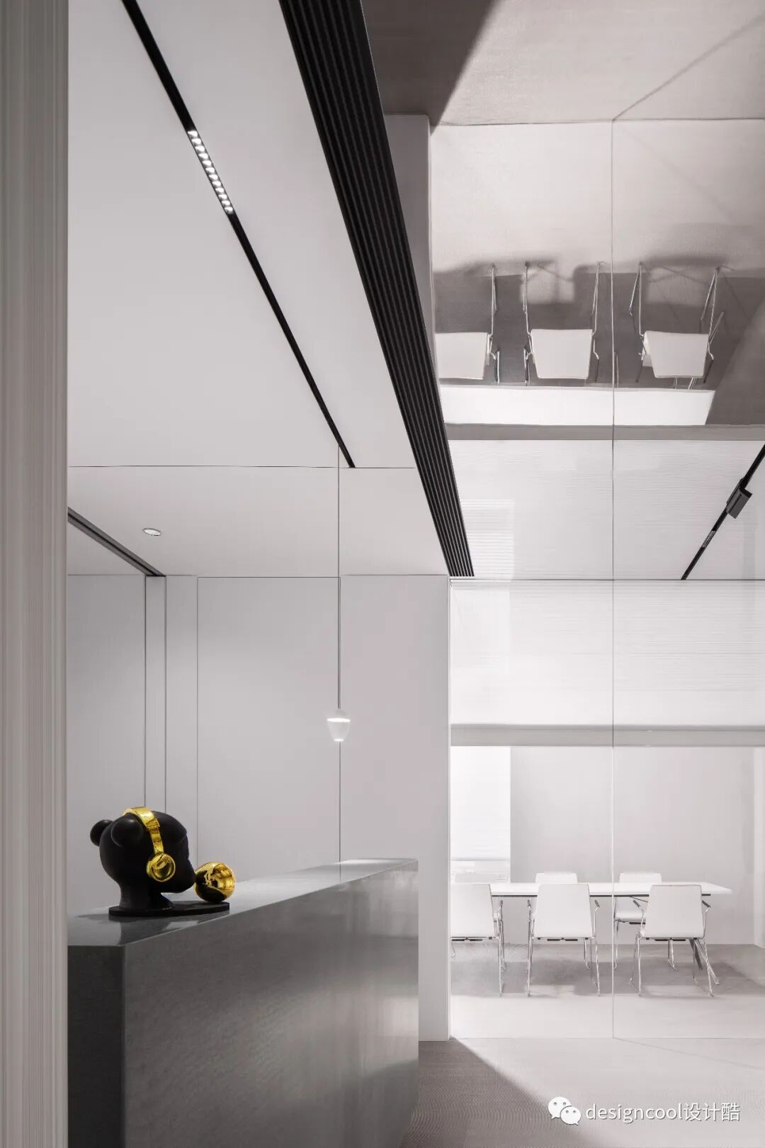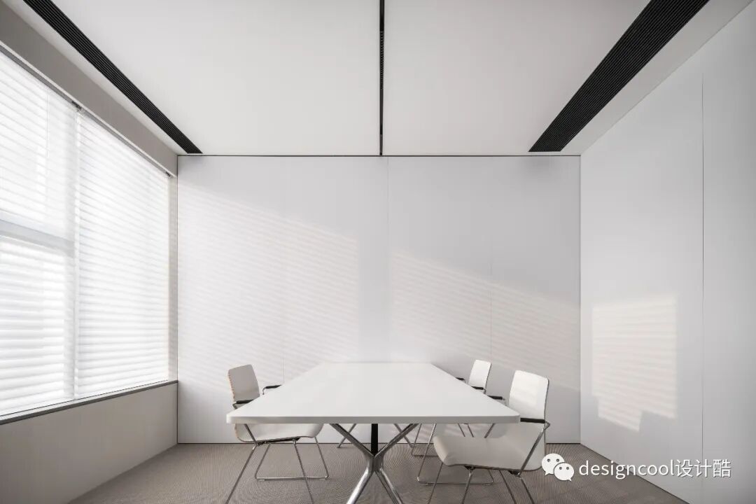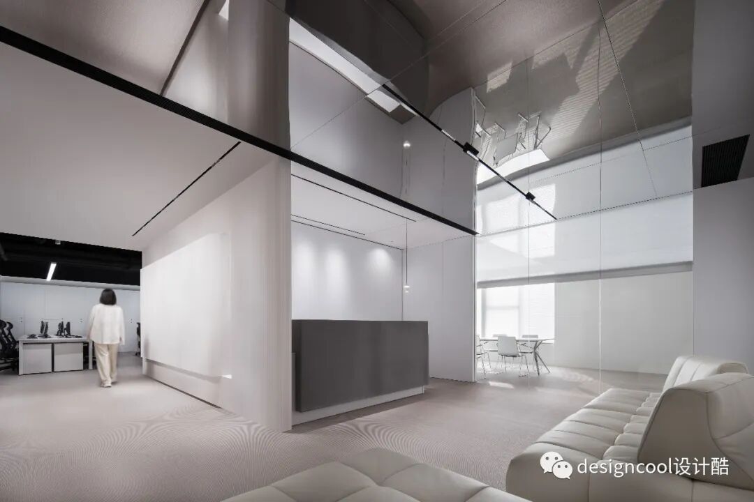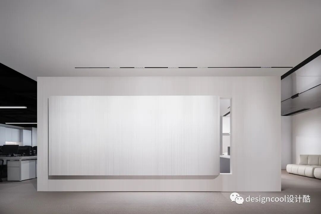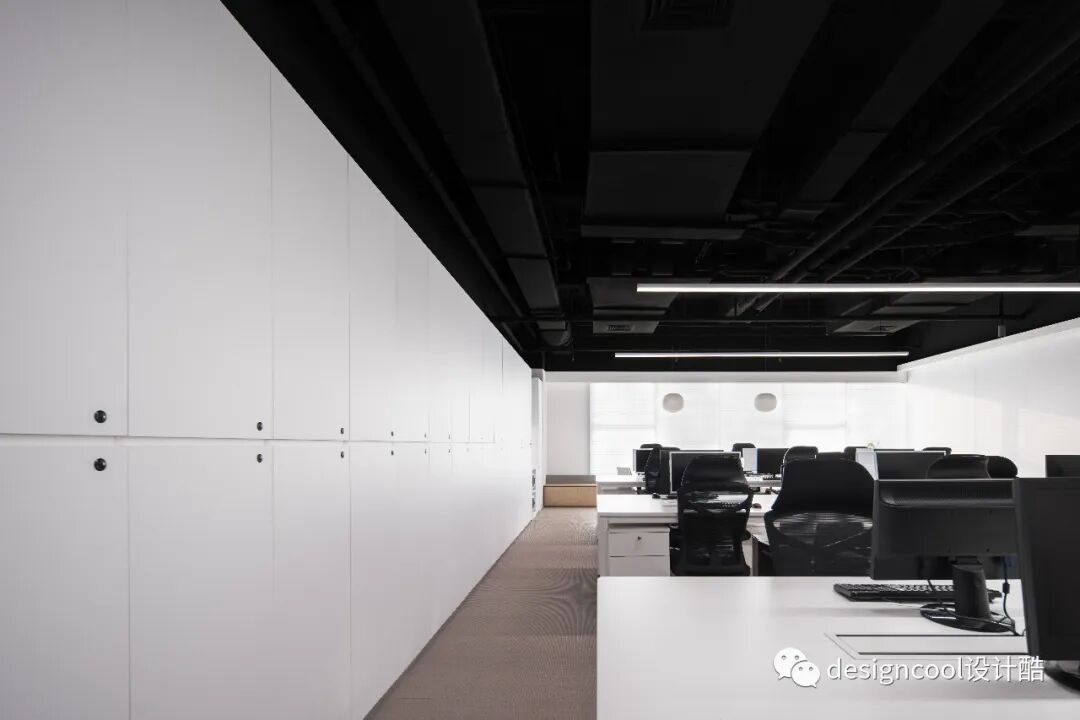 在开放式的办公环境里,黑与白的对立,尤为明显。黑色象征着内敛、冷静、果断,在这里,确保高效运行的办公环境。光的过渡,亦指向了从外到内到探索,从被动到主动的转变。