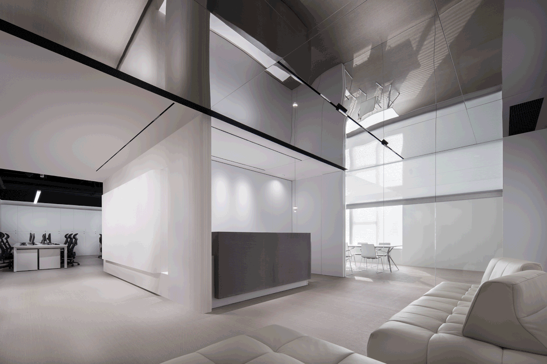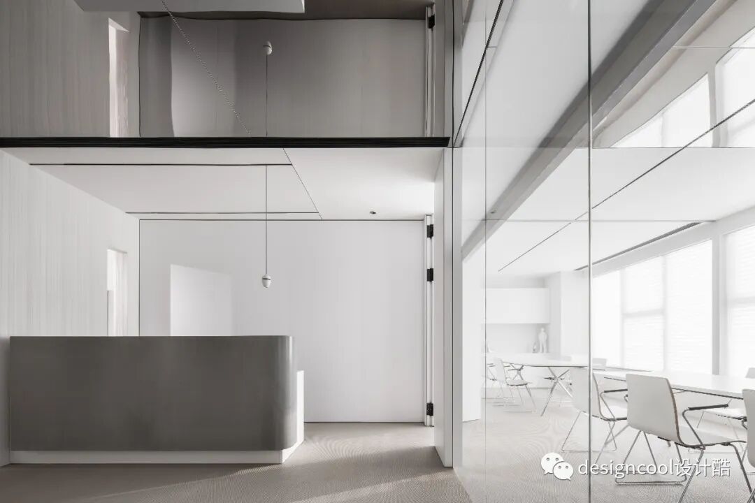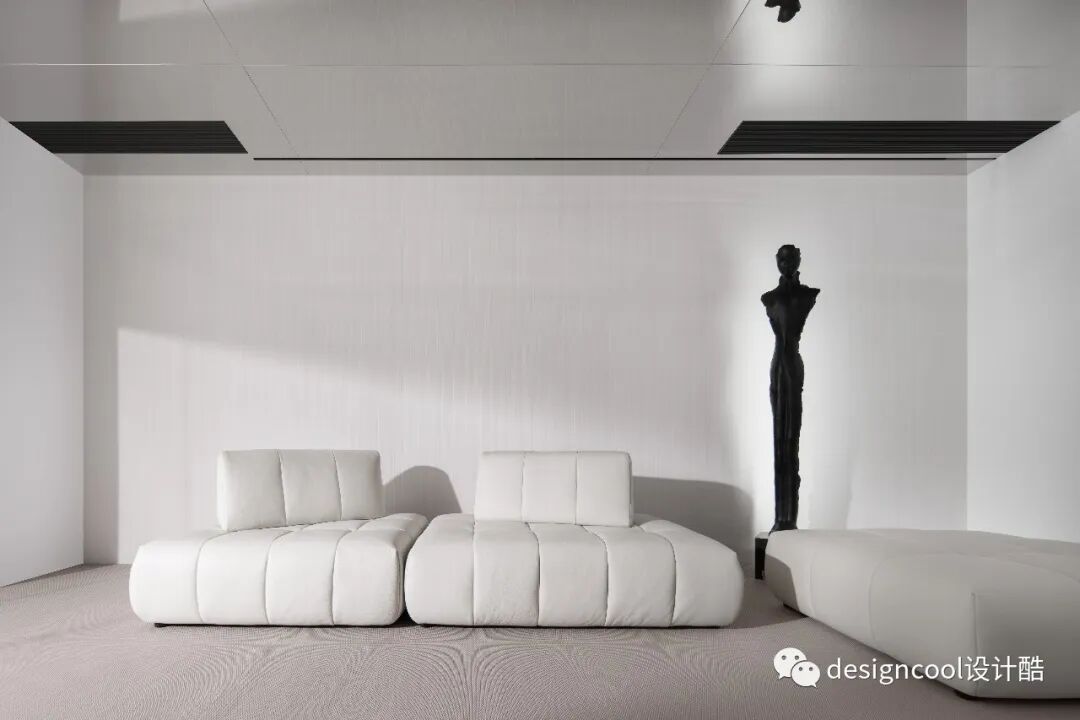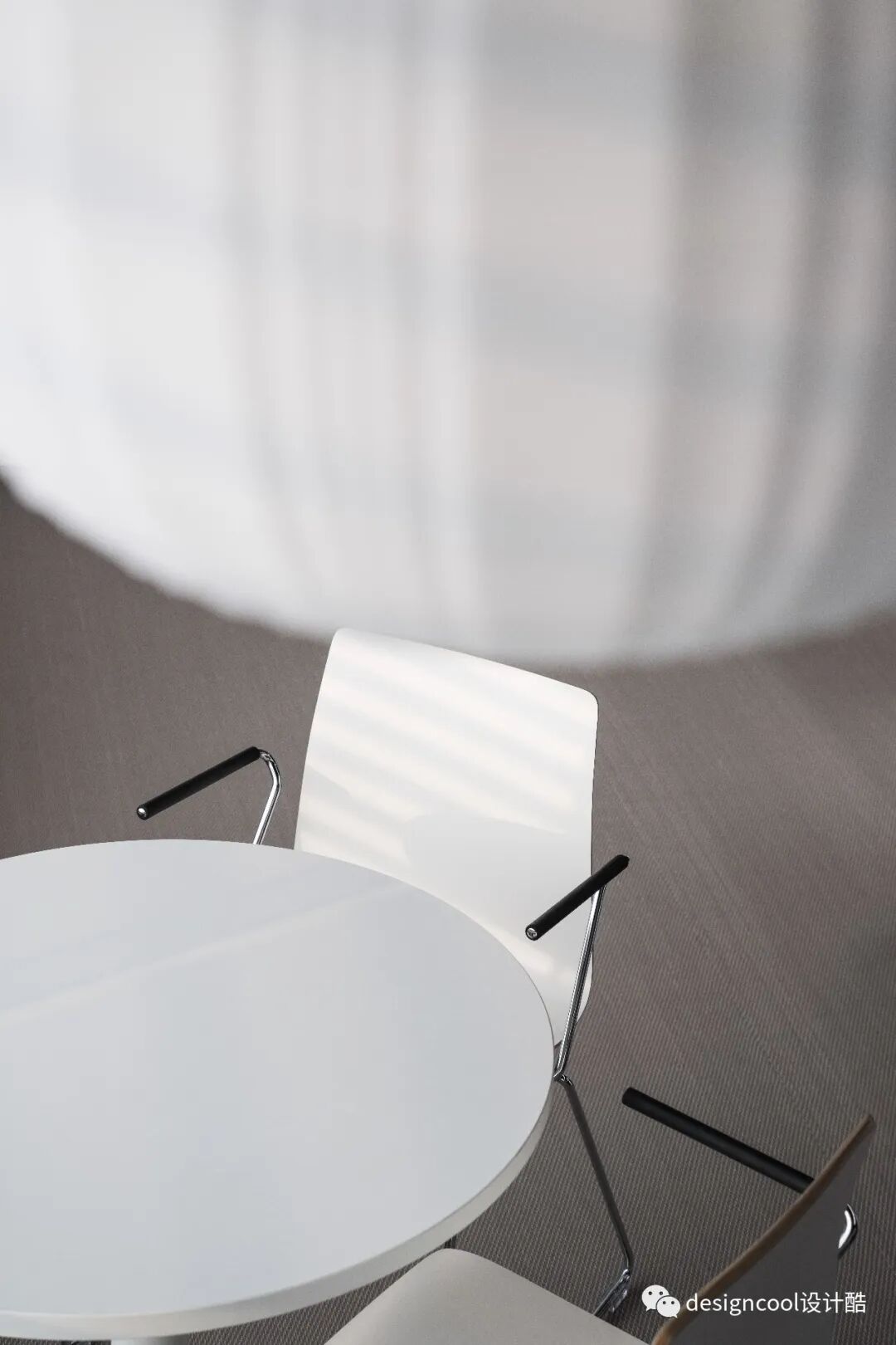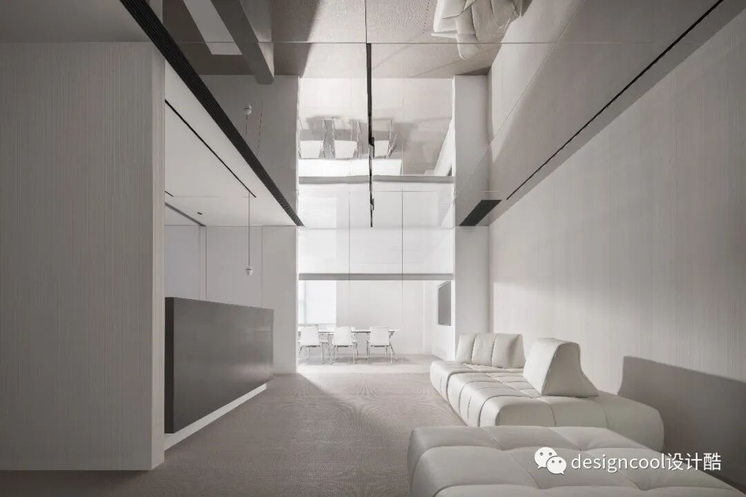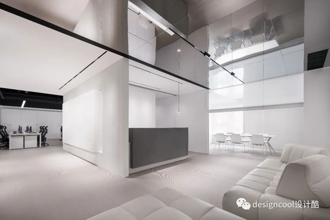 在开放式的办公环境里,黑与白的对立,尤为明显。黑色象征着内敛、冷静、果断,在这里,确保高效运行的办公环境。光的过渡,亦指向了从外到内到探索,从被动到主动的转变。