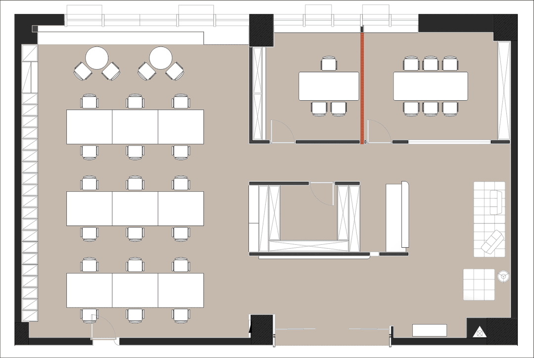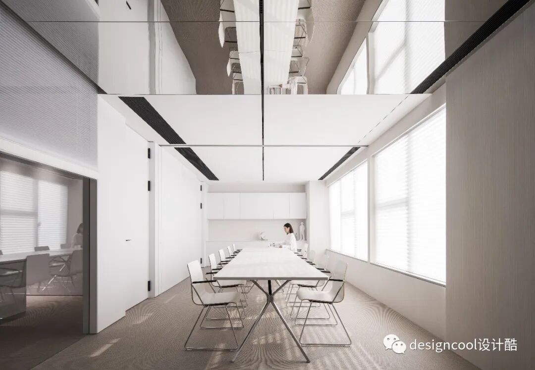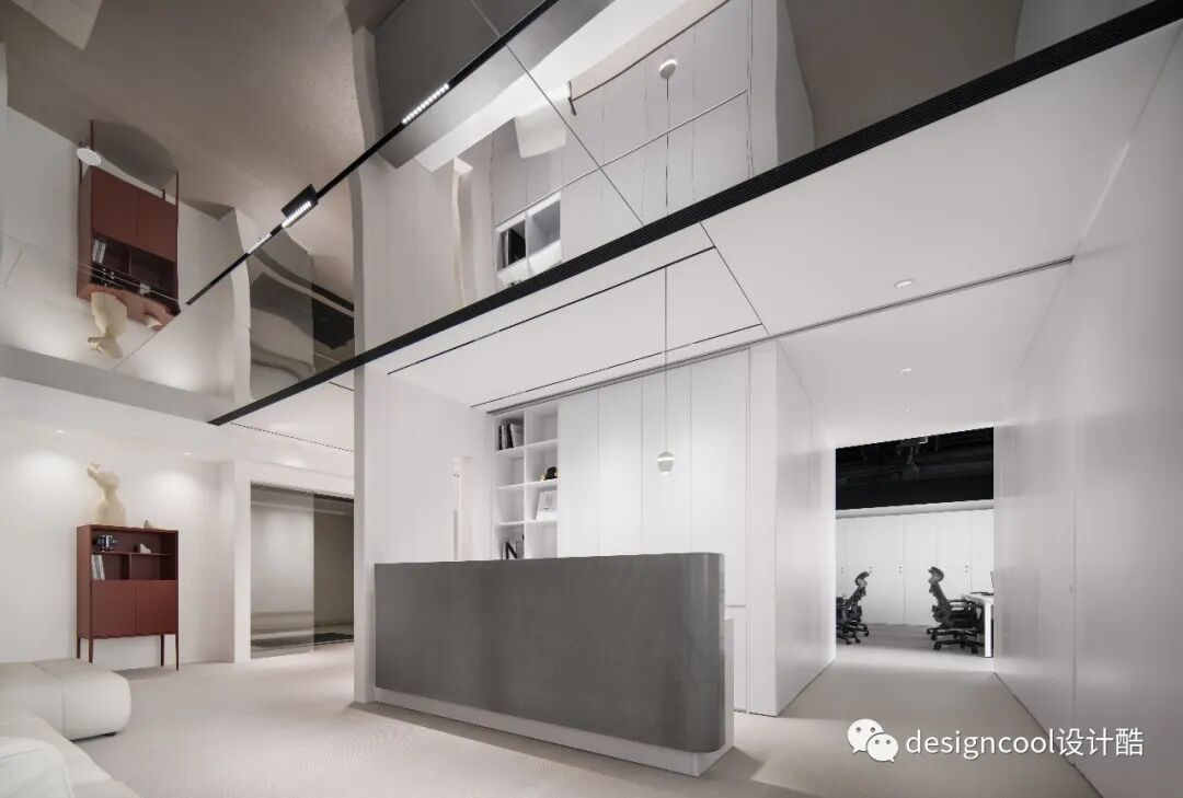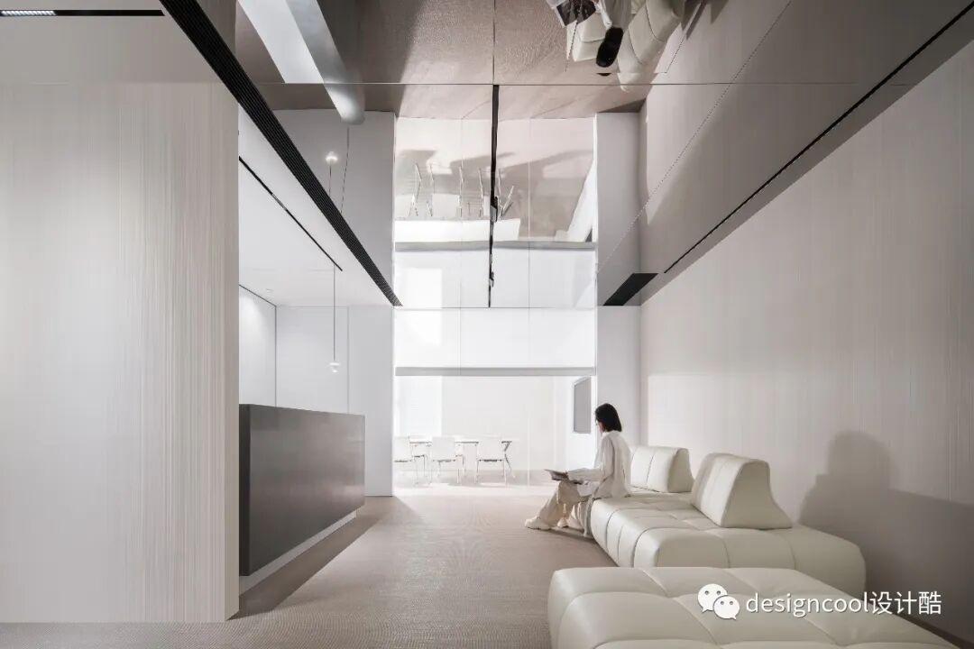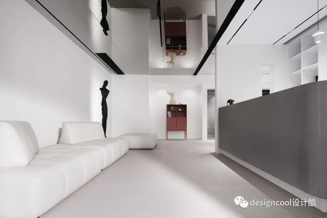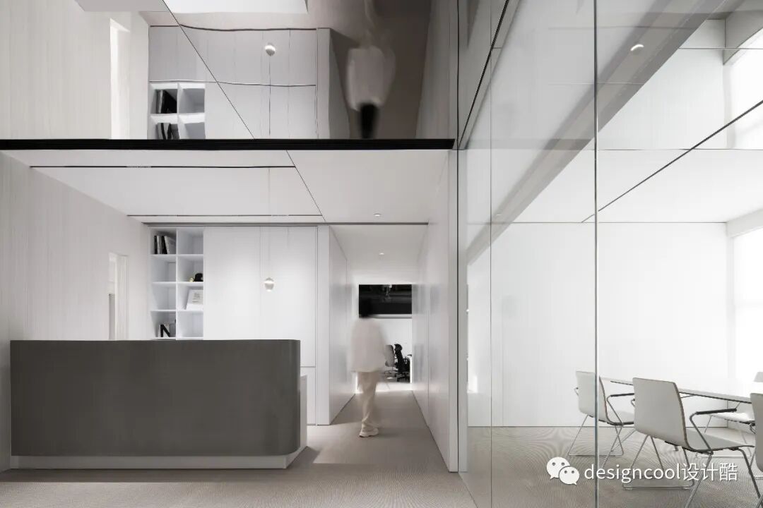 在开放式的办公环境里,黑与白的对立,尤为明显。黑色象征着内敛、冷静、果断,在这里,确保高效运行的办公环境。光的过渡,亦指向了从外到内到探索,从被动到主动的转变。