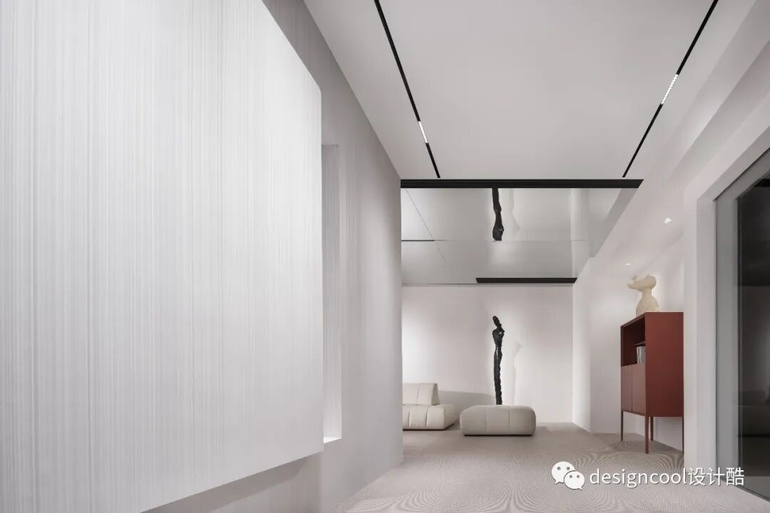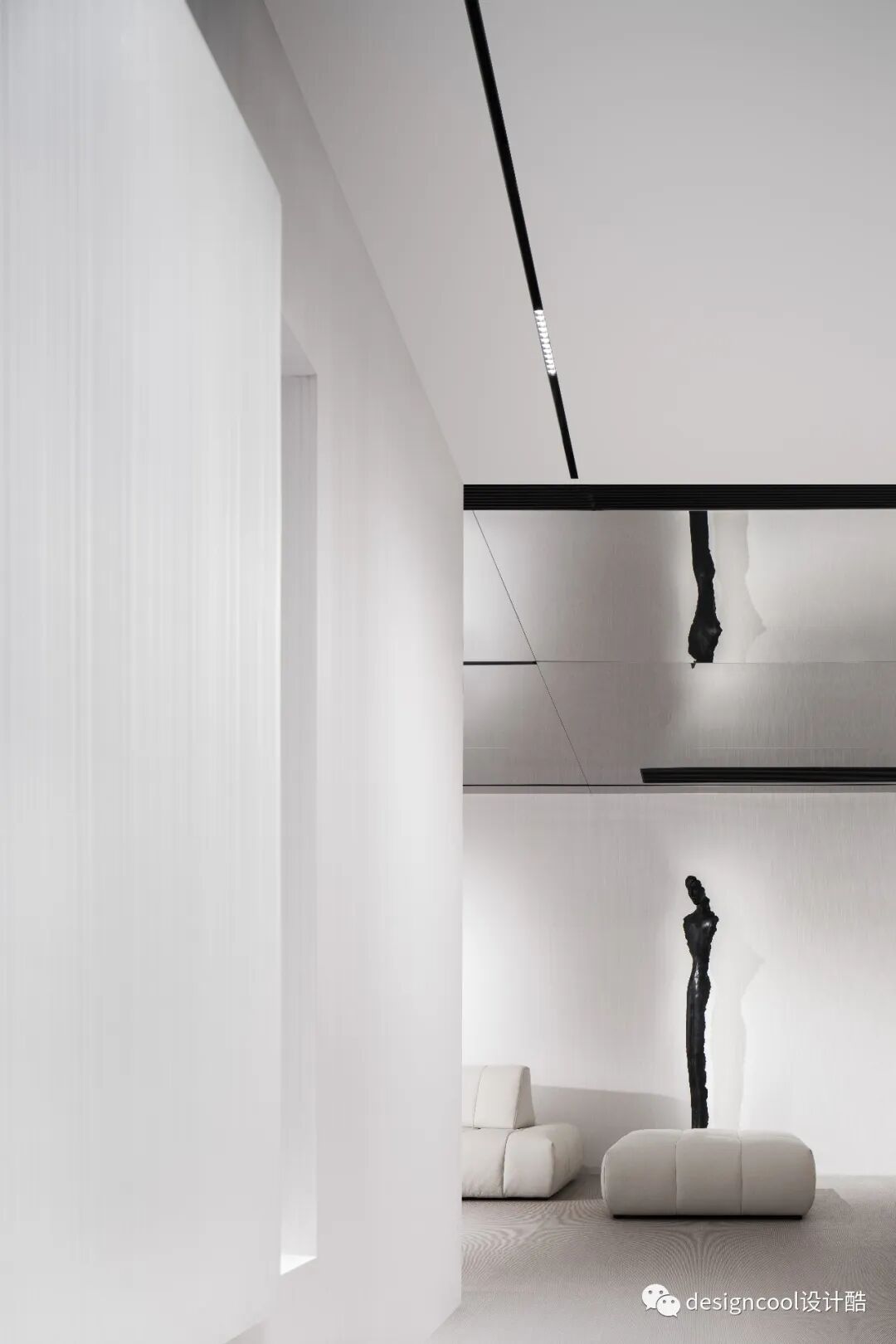 在空间中,光以特殊形式作为存在,即是独立,又与空间相互共融。空间的比例、情绪、肌理,随着光的指引形成截然不同的互动。当走在白色的空间中,光的进入打破了空间的肃穆与自制,凛冽的环境蜕变立体而富有温度,材质的质感开始有意识地复苏,渐渐浮现。
