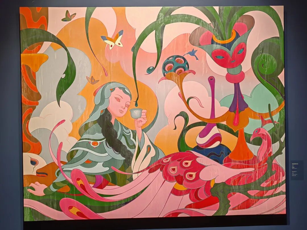 千年神话与当代生活的并置,古典式优雅与卡通式涂鸦的对话,传统绘画与智能算法影像的融合,这便是属于 简明 的独特艺术图景。简明 通过挖掘流行文化和神秘文化的不同方面,用传统技法和当代数字技术相结合创造了独树一帜的混合叙事风格,且作品极富跨媒介特色及跨文化色彩。