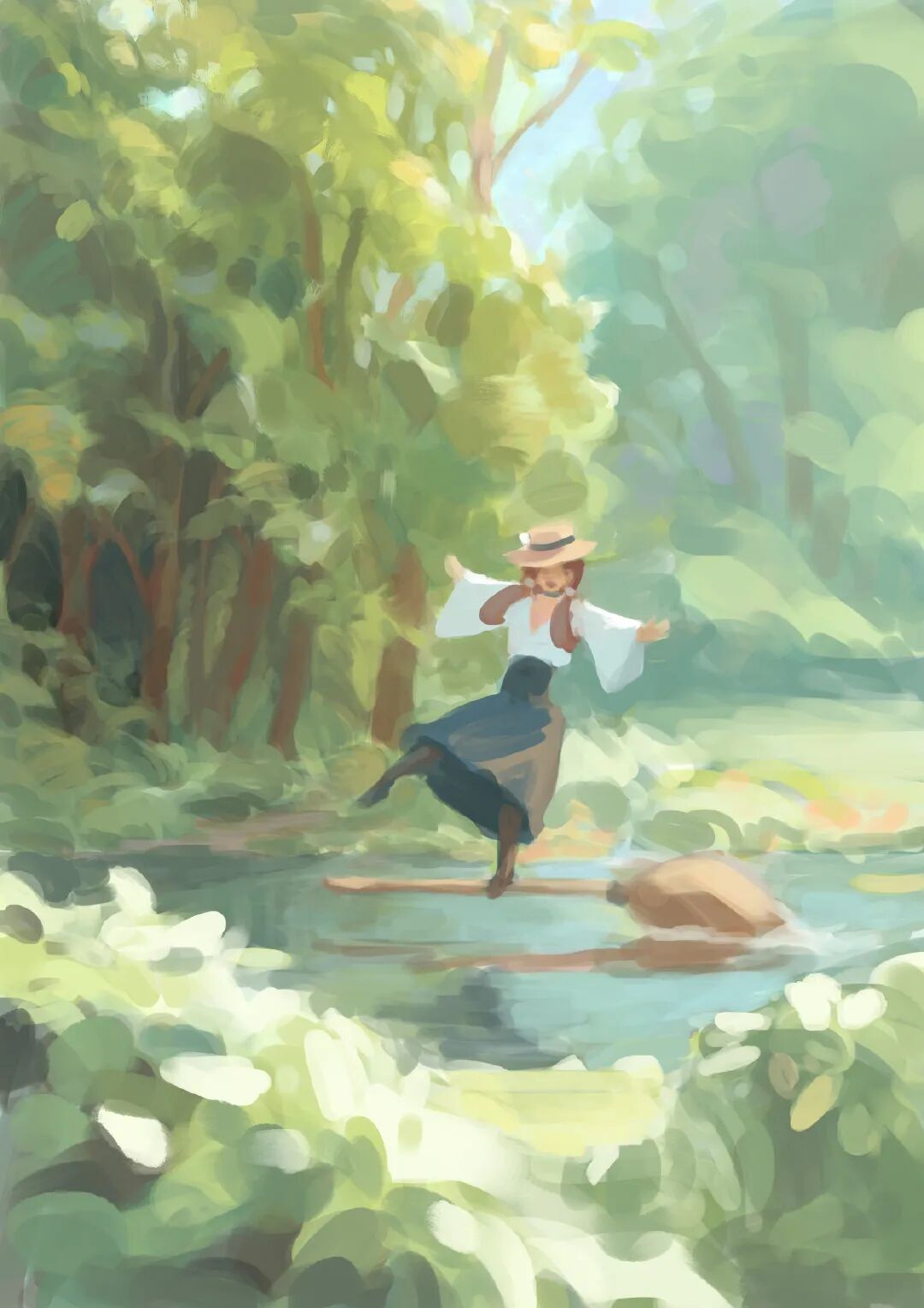 画画的花噎菜:如果文字艺术也算进去的话,那艺术对我来说的意义就是表达,当然,绘画也是,只不过以前我没有什么想用绘画表达的东西,最近有了,我想用单幅的插画讲好各种有趣的故事,如果可以有一个副业的话,那我想当一个撰稿人,把写这篇专访的人饭碗抢走(手动狗头)