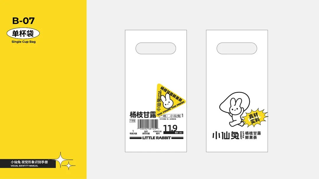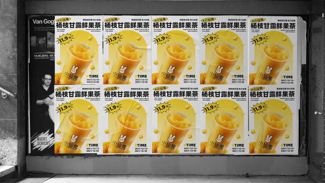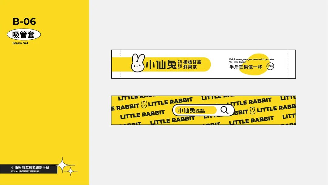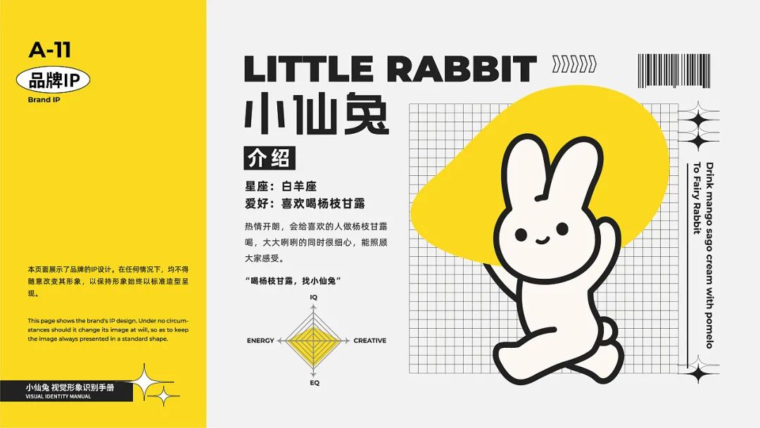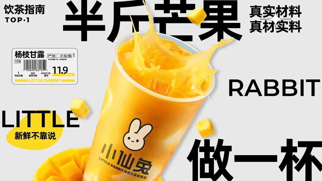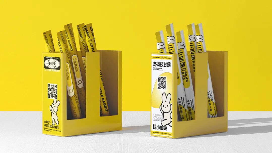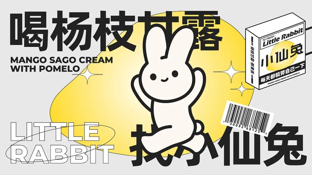整体设计以简约潮流为主,可爱呆萌面无表情的小兔子为主要形象,增加视觉记忆点。并拟定了“每天都犒劳自己一下”的辅助语,每天都能喝的健康和每天都敢喝的价格,就是小仙兔广受好评的核心出发点。